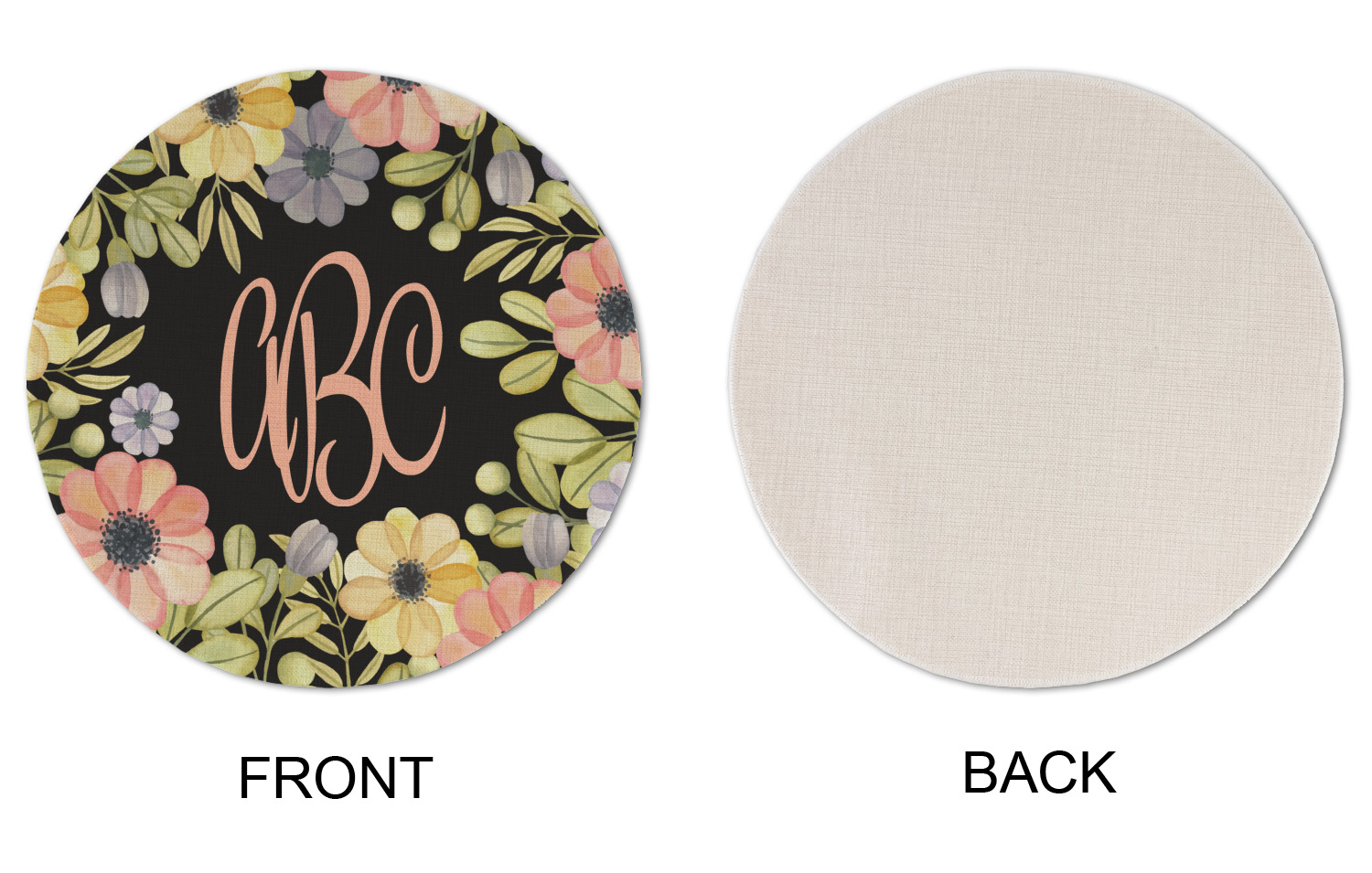 This design features a gorgeous black background with a frame of colorful wild flowers and greenery. You will find pinks, purples, and greens. But, if you were looking for other colors or types of flowers, be sure to take a peek in our design center at the other fun floral frame backgrounds we have. In the middle of this floral design you will find a three letter monogram to give an opportunity for our favorite thing: personalizing!