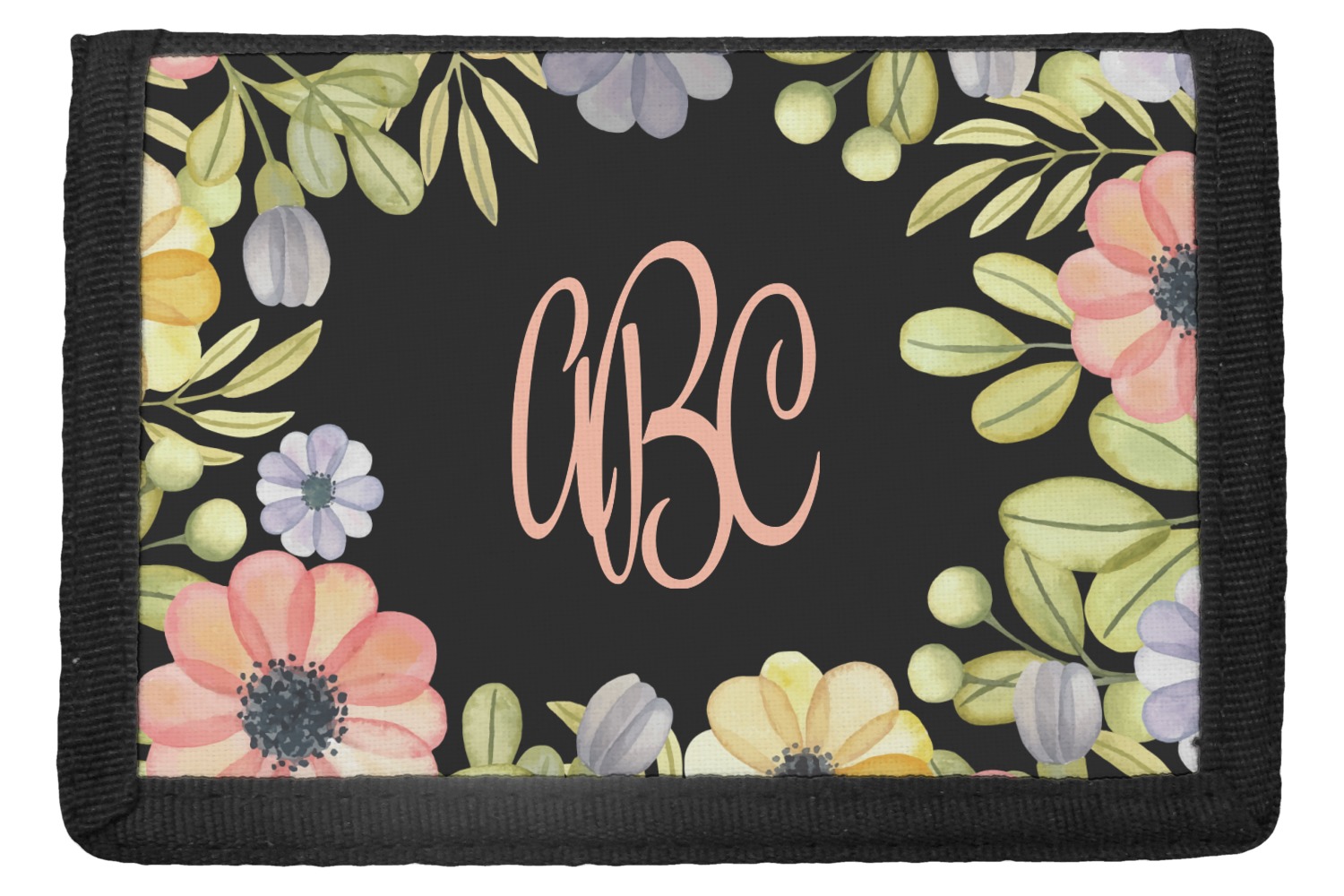 This design features a gorgeous black background with a frame of colorful wild flowers and greenery. You will find pinks, purples, and greens. But, if you were looking for other colors or types of flowers, be sure to take a peek in our design center at the other fun floral frame backgrounds we have. In the middle of this floral design you will find a three letter monogram to give an opportunity for our favorite thing: personalizing!