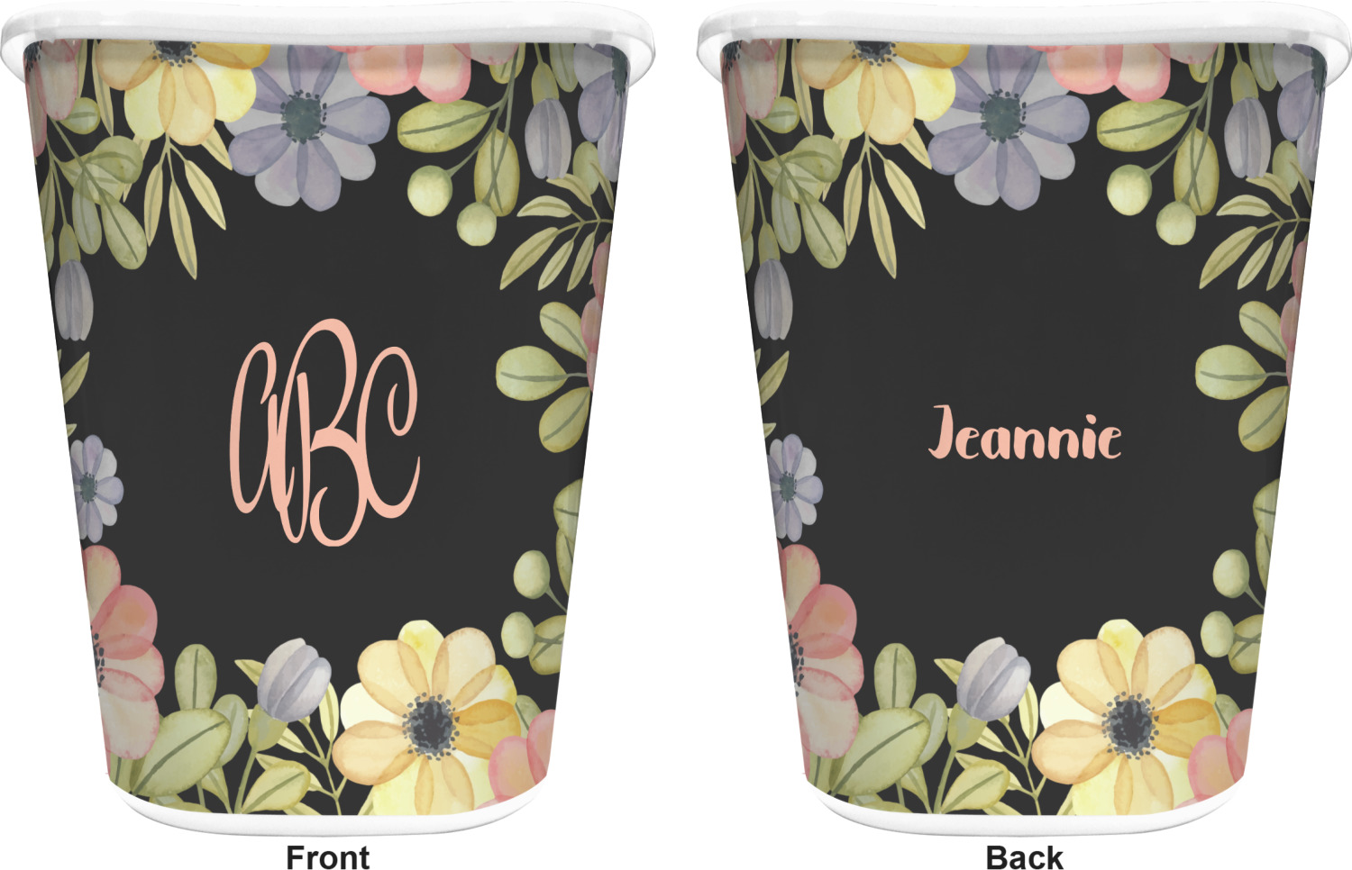 You can choose to purchase these decorative wastebaskets in either a white or a black color that will show on the base and the upper rim. Your customization is printed on a high-gloss, fine-quality vinyl adhesive, and you can choose to either have this adhesive applied to one side only or to both sides. As such, this plastic wastebasket can be single-sided or double-sided, depending on your creative vision. Your customization is printed using durable inks, making the design waterproof and resistant to fading over time.