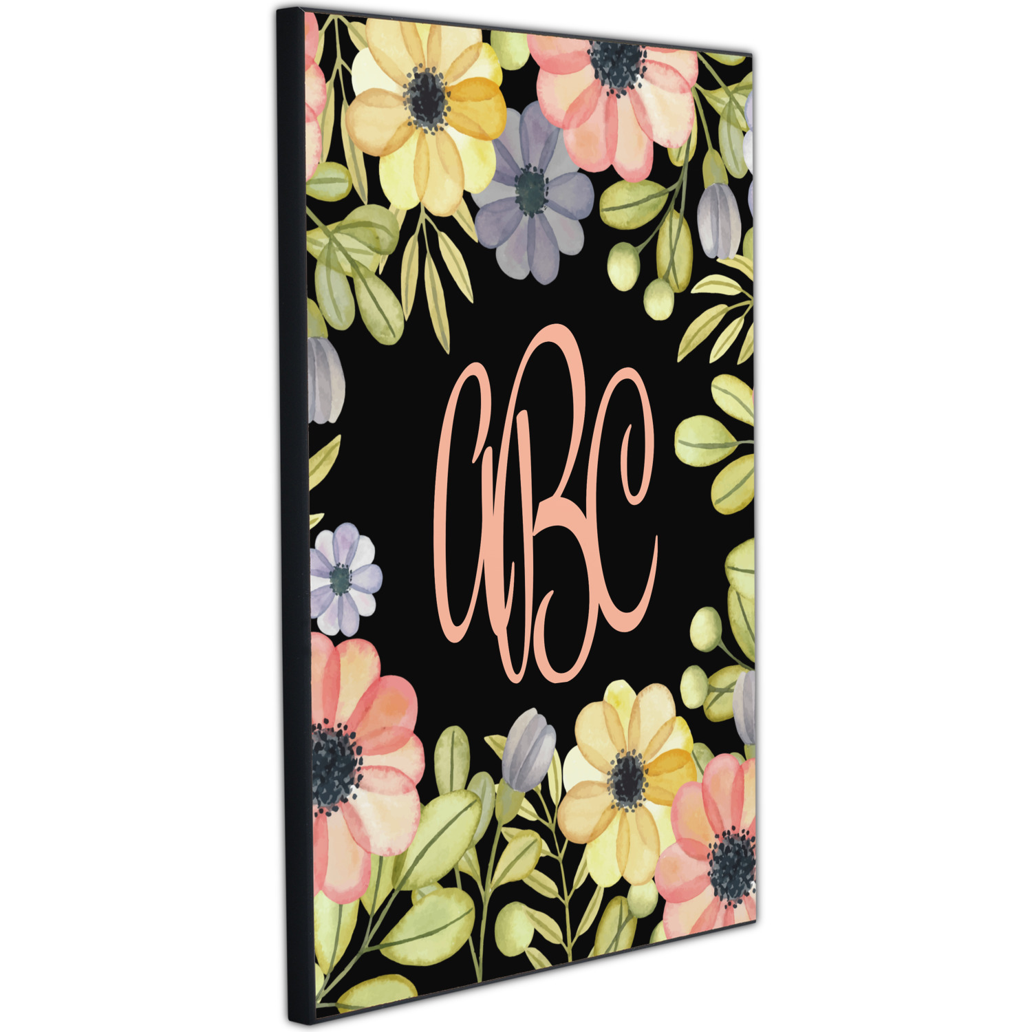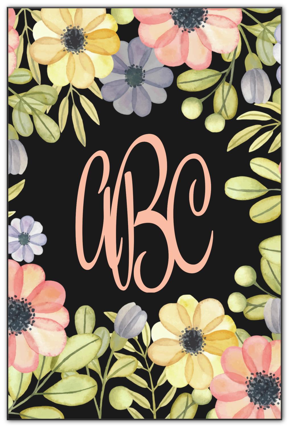 This design features a gorgeous black background with a frame of colorful wild flowers and greenery. You will find pinks, purples, and greens. But, if you were looking for other colors or types of flowers, be sure to take a peek in our design center at the other fun floral frame backgrounds we have. In the middle of this floral design you will find a three letter monogram to give an opportunity for our favorite thing: personalizing!