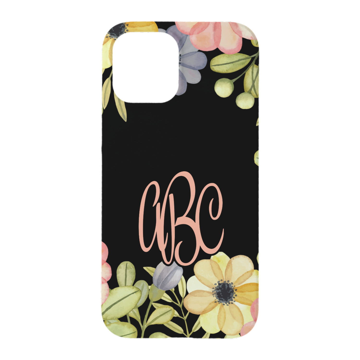 This design features a gorgeous black background with a frame of colorful wild flowers and greenery. You will find pinks, purples, and greens. But, if you were looking for other colors or types of flowers, be sure to take a peek in our design center at the other fun floral frame backgrounds we have. In the middle of this floral design you will find a three letter monogram to give an opportunity for our favorite thing: personalizing!