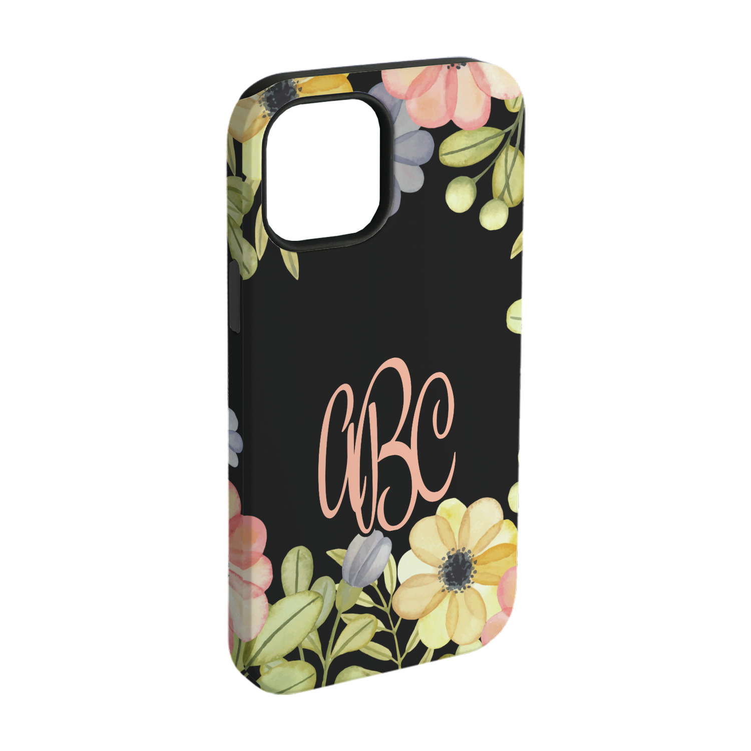 This design features a gorgeous black background with a frame of colorful wild flowers and greenery. You will find pinks, purples, and greens. But, if you were looking for other colors or types of flowers, be sure to take a peek in our design center at the other fun floral frame backgrounds we have. In the middle of this floral design you will find a three letter monogram to give an opportunity for our favorite thing: personalizing!