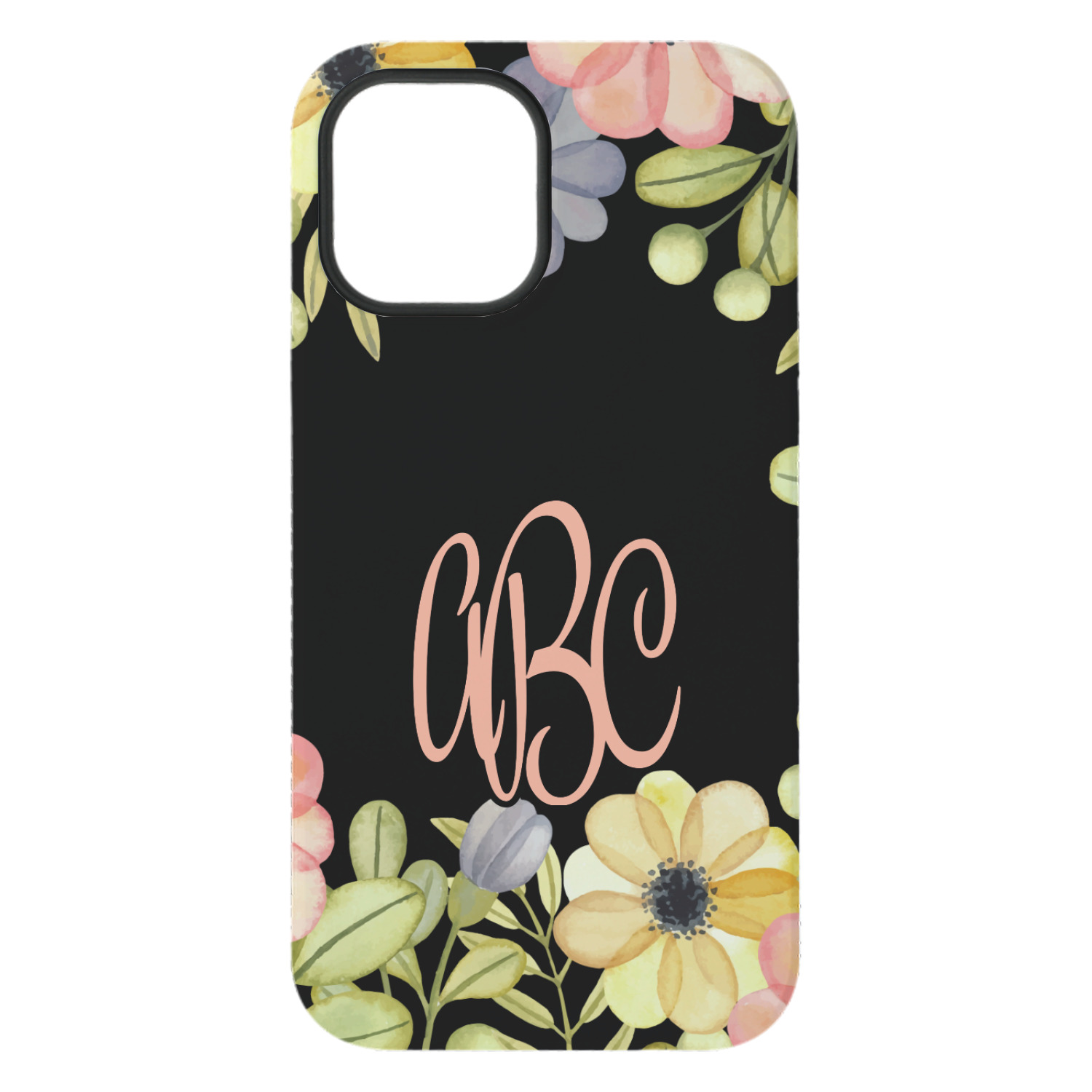 This design features a gorgeous black background with a frame of colorful wild flowers and greenery. You will find pinks, purples, and greens. But, if you were looking for other colors or types of flowers, be sure to take a peek in our design center at the other fun floral frame backgrounds we have. In the middle of this floral design you will find a three letter monogram to give an opportunity for our favorite thing: personalizing!