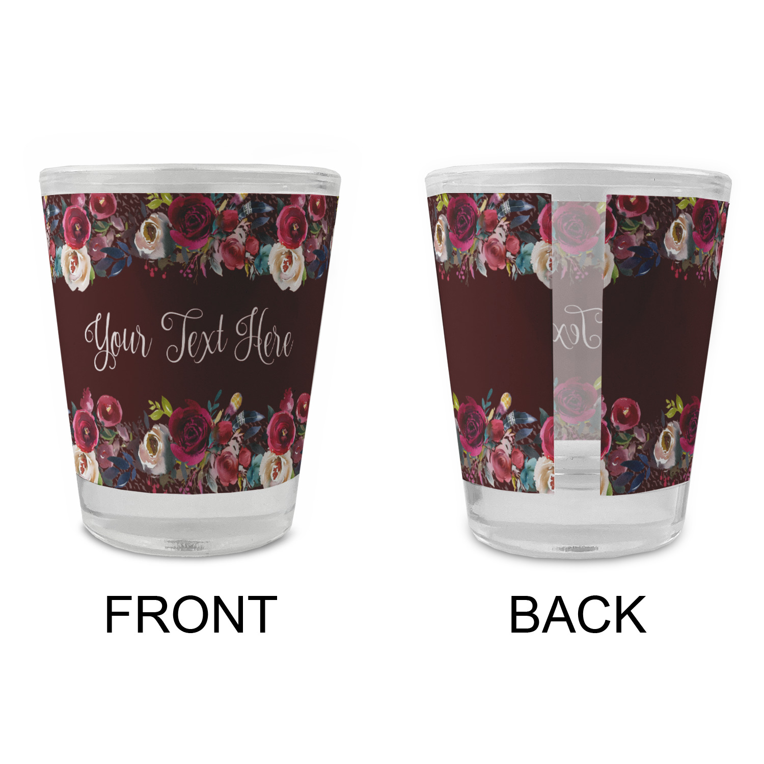 Made with frosted glass, these shot glasses are printed in full color with the design of your choice. They are a standard 1.5oz shot glass and are 2.4" tall. The print is wrapped around the shot glass in a full wrap and boldly displays your customization.