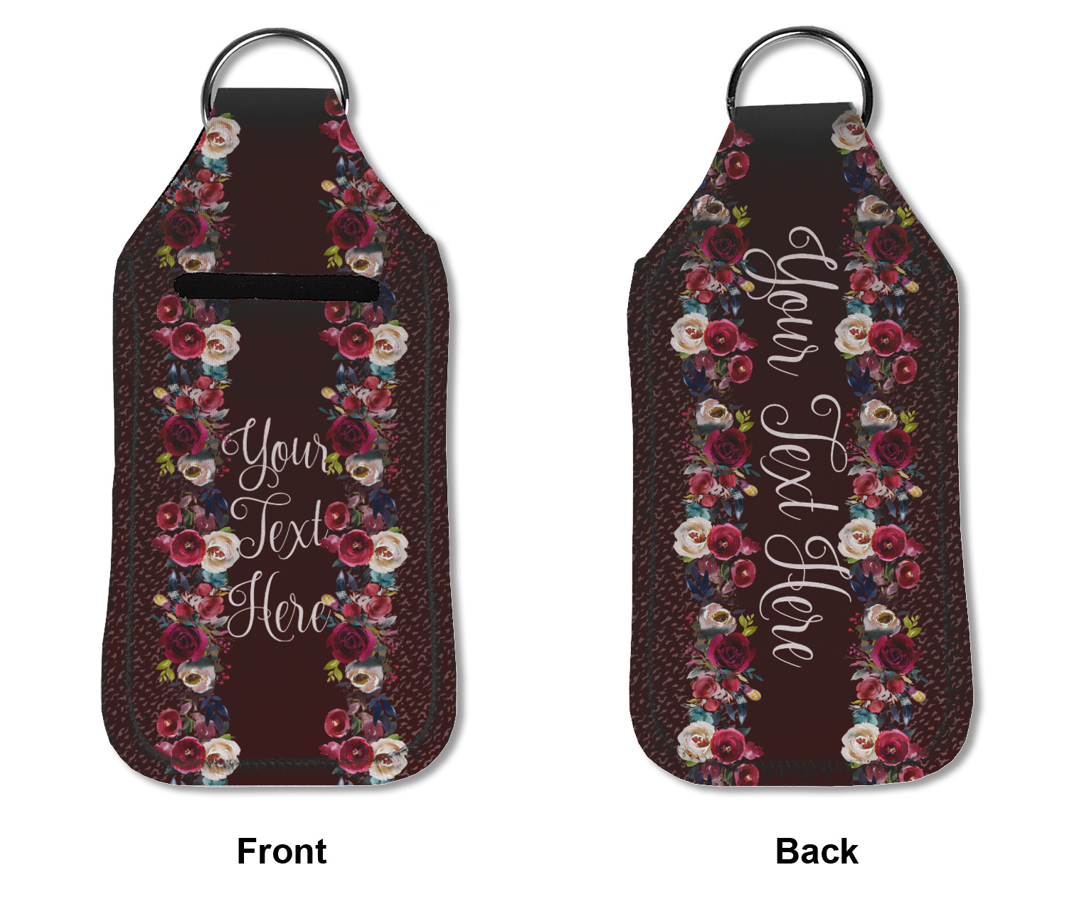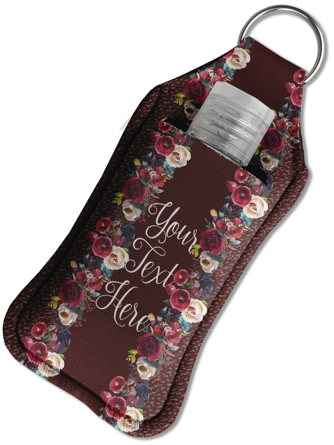 Each hand sanitizer holder comes with its own empty travel-sized, refillable hand sanitizer sure to fit snug in your customized sanitizer case! Our hand sanitizer cases are a durable, yet soft neoprene material sure to last any daily activities or travel agenda. Customize and personalize a hand sanitizer bottle holder with one of our two sizes - small (4.25" x 2.25") or large (5.5" x 2.5"). Each travel sanitizer holder comes with a keyring for attachment on bags, keys, or more!