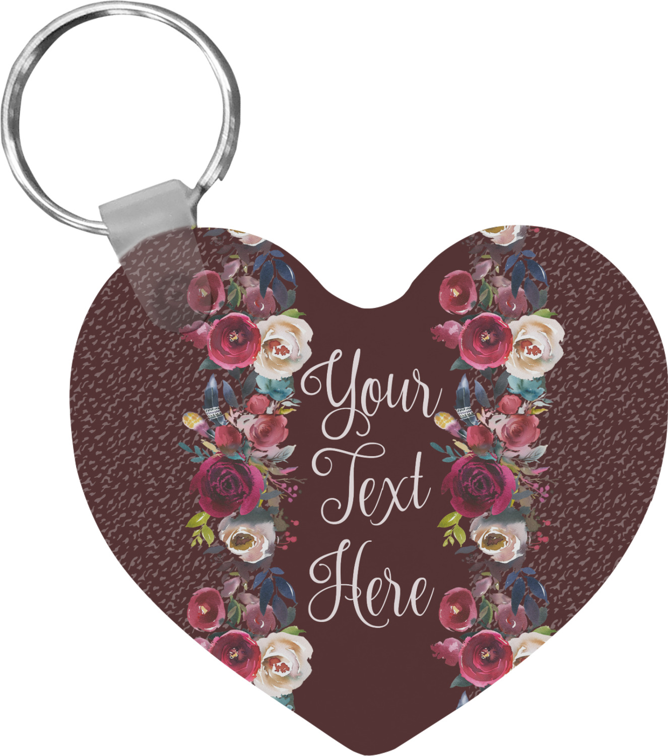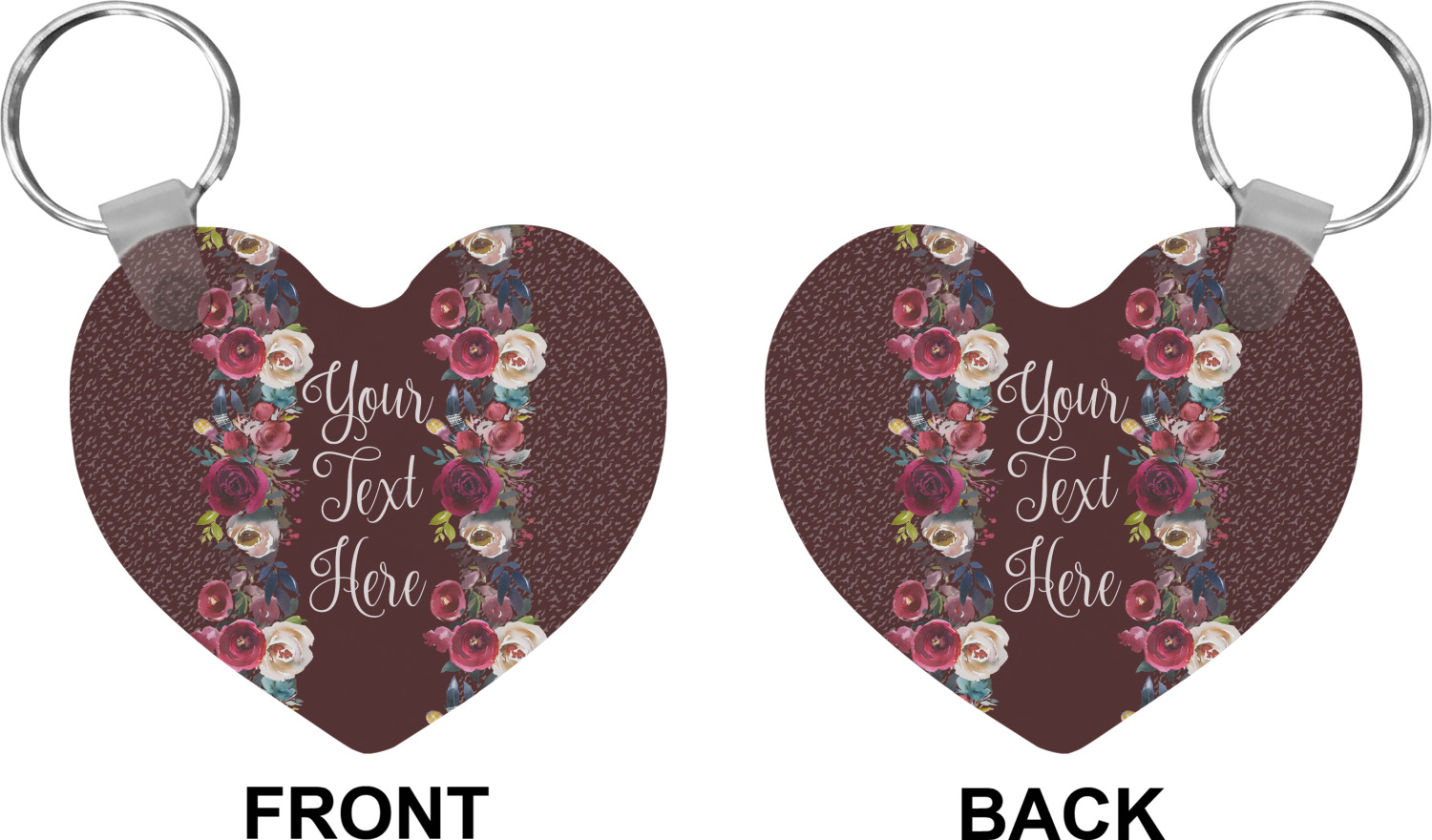 Our personalized keychains attach to the included metal, split key ring with a plastic, removable snap. Since a metal ring is included with your purchase, you have the liberty to keep your keys together on the ring, with or without your unique keychain. We offer this keychain in three different shapes: circle, heart, or diamond. We print your personalized design(s) on both sides of the key chain, and the surface has a glossy, reflective finish that only emphasizes your design. Each keychain is approximately 2.25 by 2.25 inches.