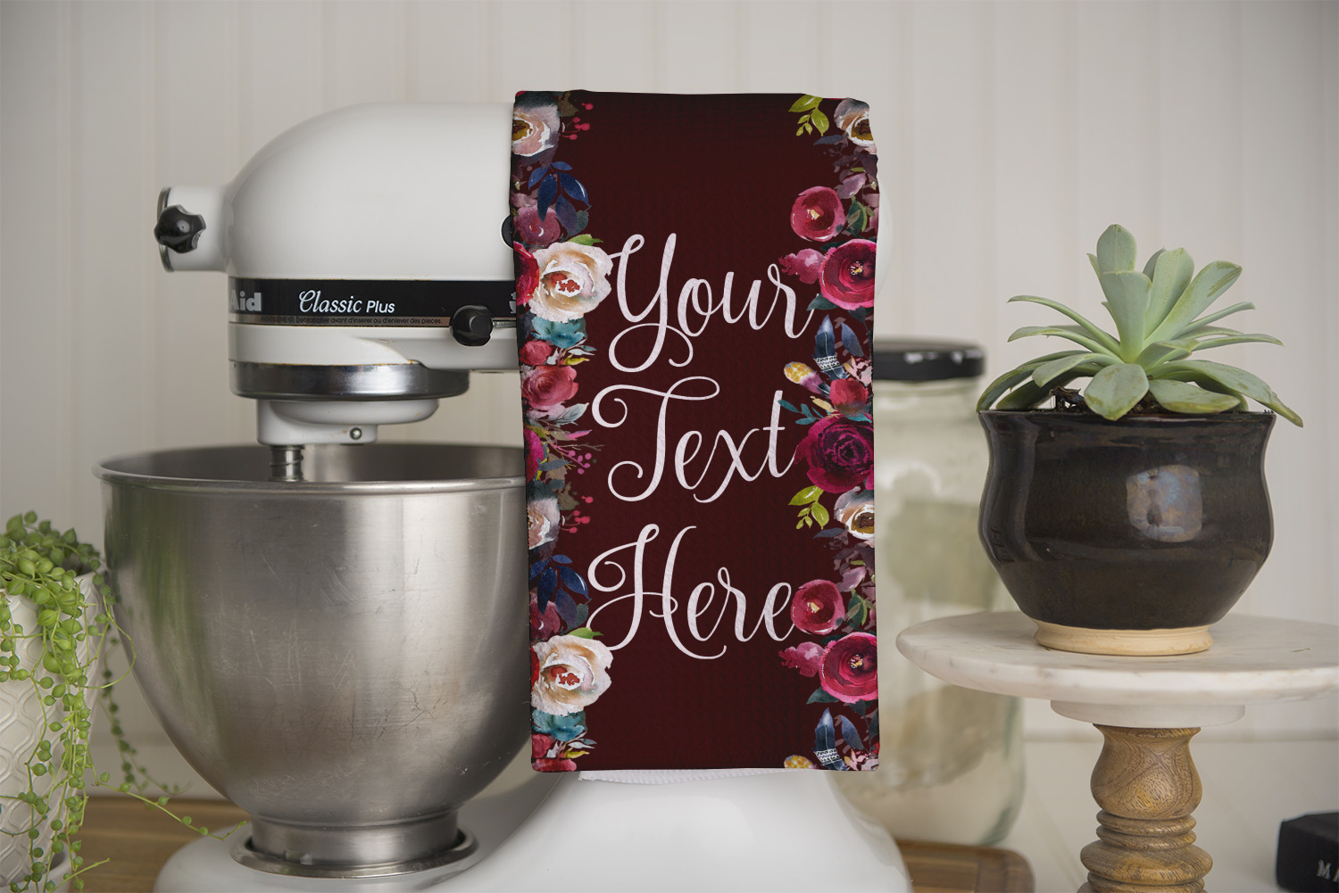Personalized kitchen towels are pretty and practical kitchen décor accents ideal for holiday dinners and other special occasions! Customize one of our many designs or create your own with our custom design template.