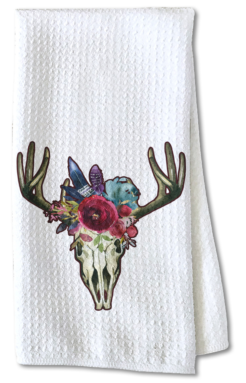 Each waffle weave kitchen towel is approximately 16 x 24 inches with your design printed on one side and the back is white.