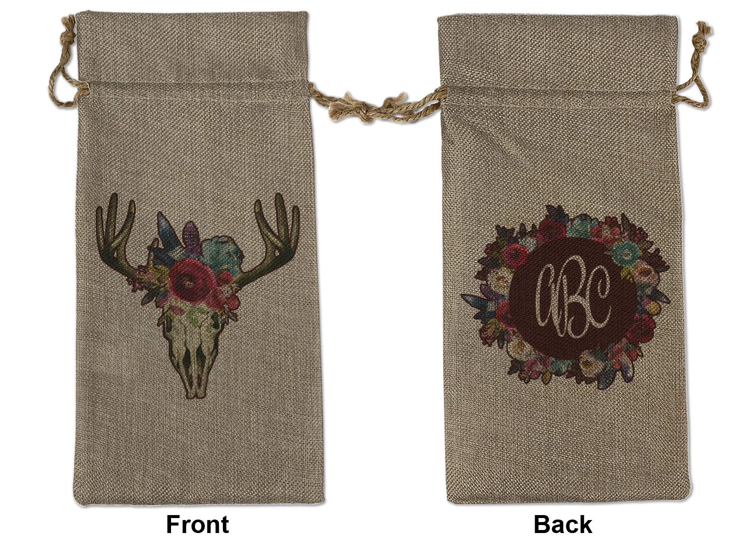 We sell our Burlap Gift Bags in 3 variant sized bags. Made with burlap polyester, each personalized bag can be secured with a twine drawstring pull. Your custom design is available to print on one side or both sides - completely up to you! The sizes of the bags measure approximately 4.5" x 6.5" for the smallest size, 6.5" x 8.0" for the medium size, and 6.5" x 13.5" for the large-sized bag.