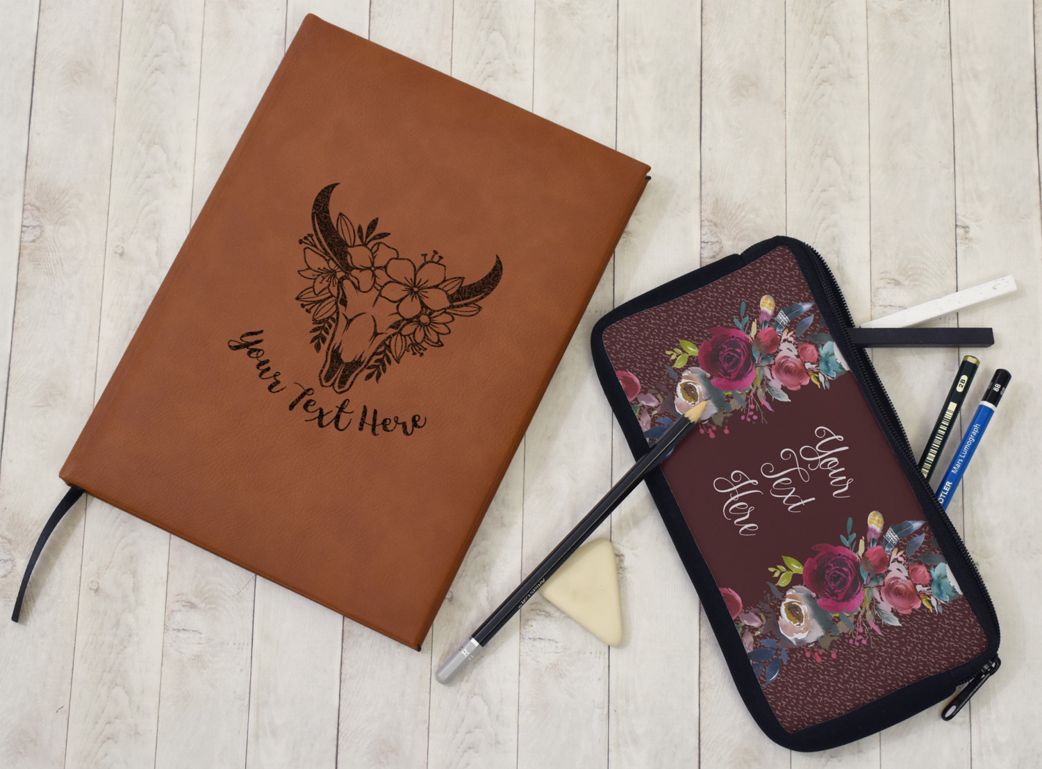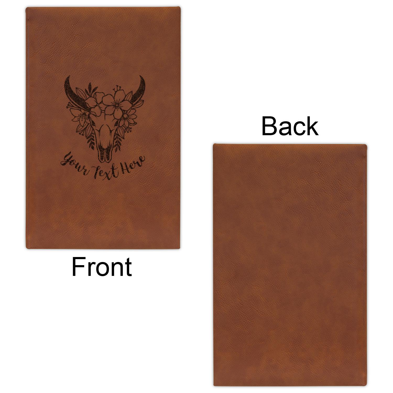 The faux leather covers are a rich cognac / rawhide color and can be customized with your design. From a simple name or monogram or a logo to a detailed mandala - the choice for customization & personalization is truly yours. Customize one of our designs or upload your own.