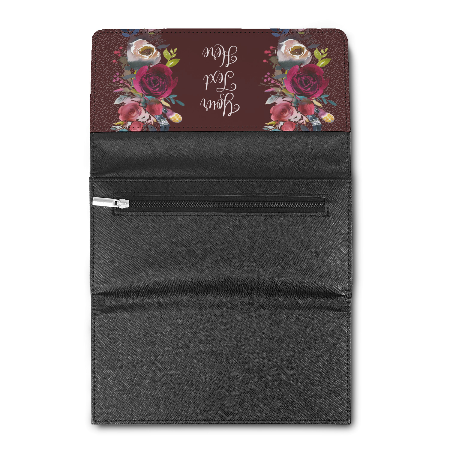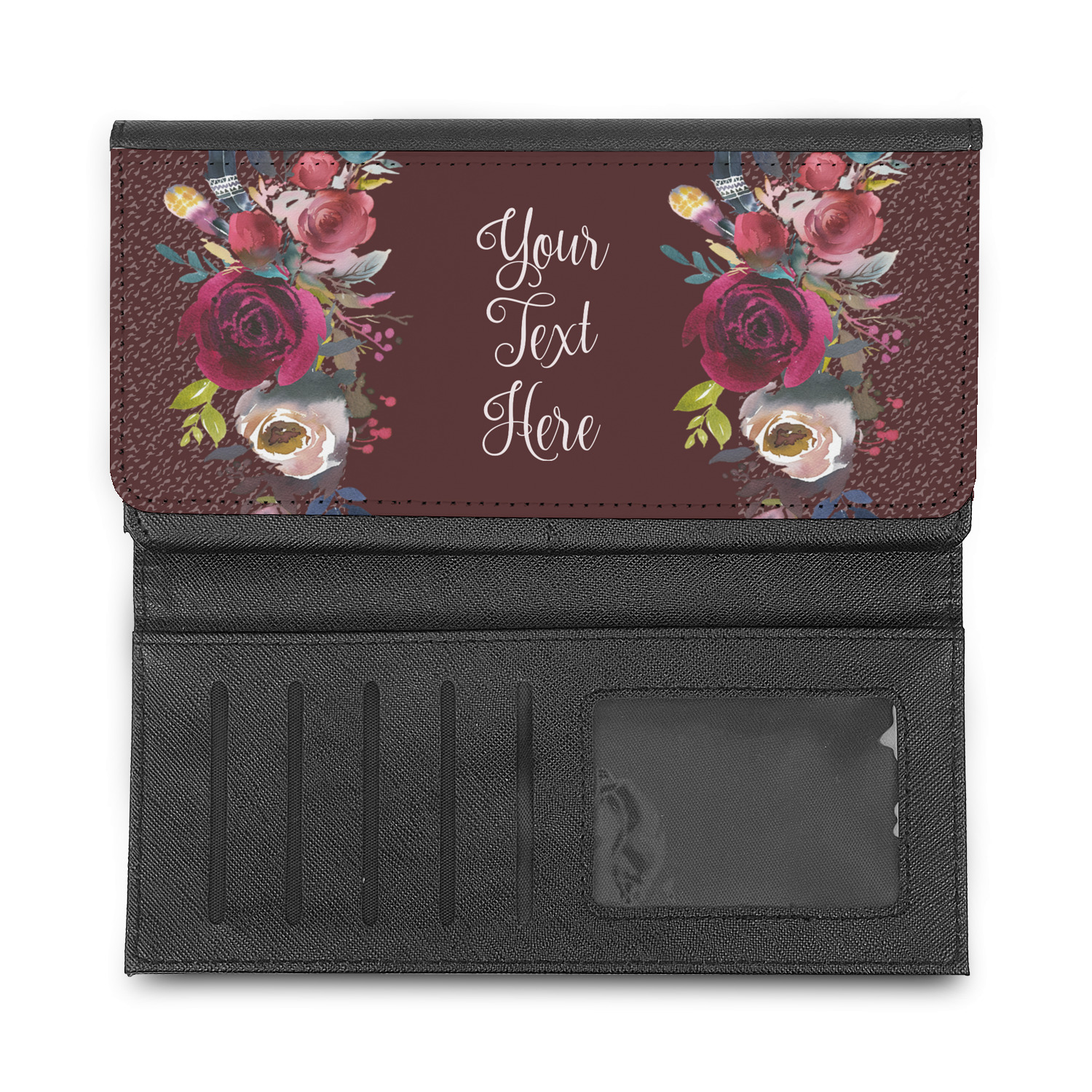 These beautiful wallets are a trifold design. The wallet is made of textured leatherette. The front section has a secure magnetic snap. The front flap is personalized with the artwork of your choice to make this wallet uniquely yours.