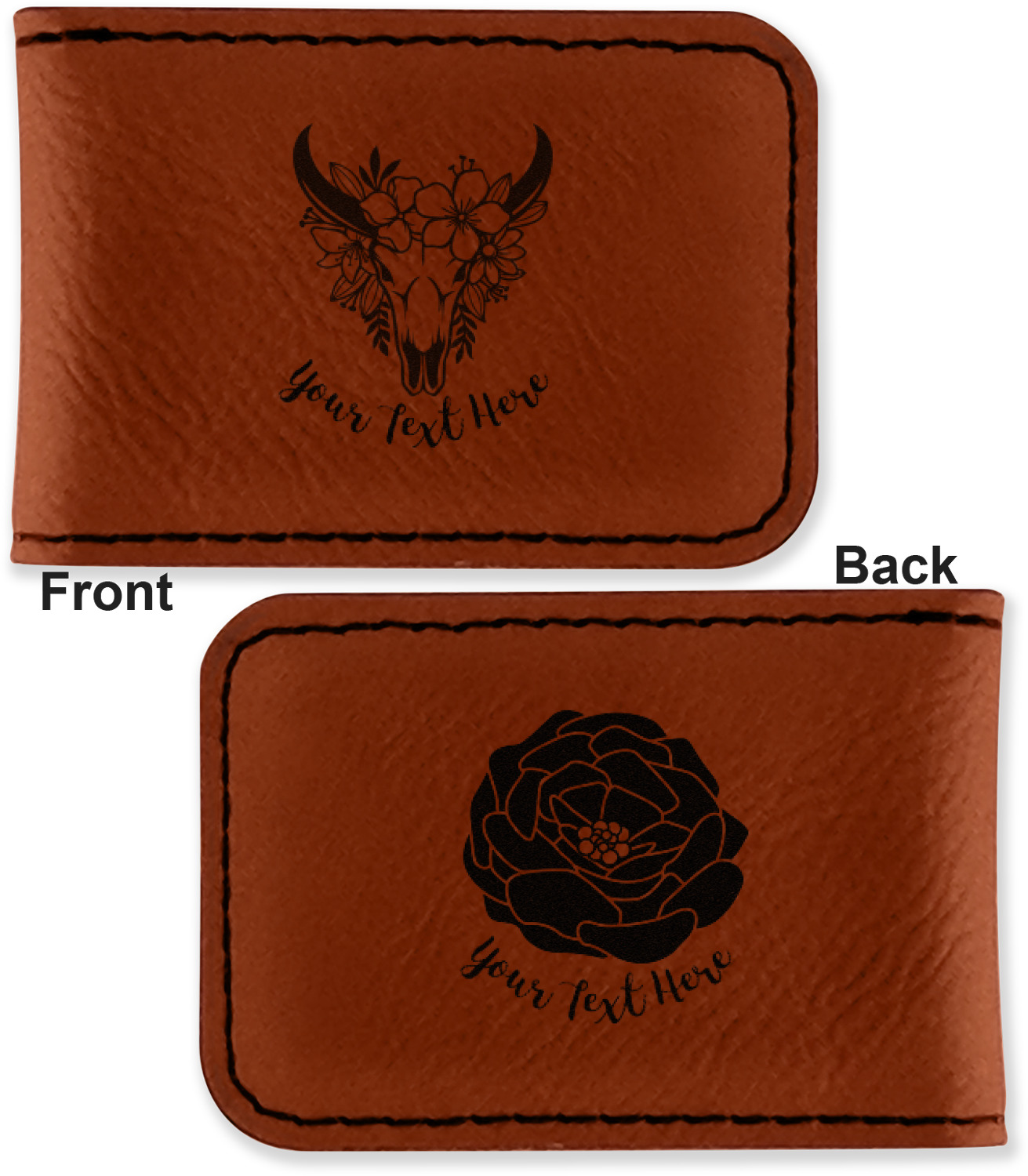 Your money clip will be laser engraved so that the design you choose will come out black. Find a fun graphic, monogram, or font to use to personalize your money clip either on just the front or the front and the back.