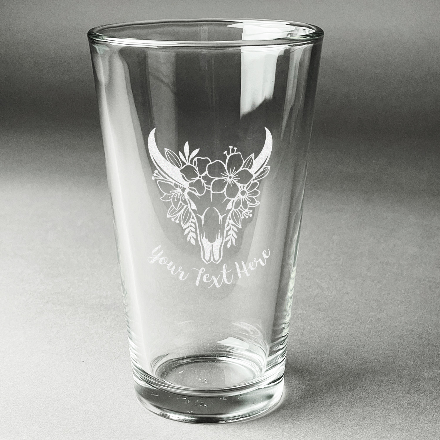 Available in a single glass or a set of 4 - each glass will be custom engraved with your design. Each glass holds 16 oz and measure 5.75"H x 3.5"W.
