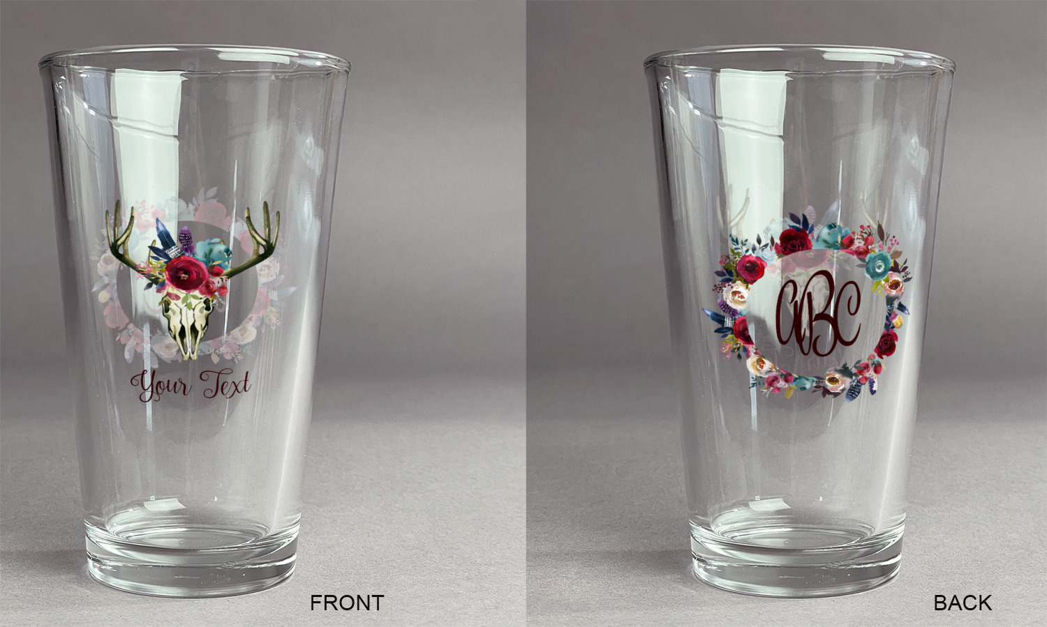 With these glasses you will get your choice of 2 content items on them. Perfect for company promotion or if you own a small restaurant or bar order these to perfectly match your business. Once designed we will print your design directly onto the glass and then a clear coat applied over it to ensure the print lasts for years to come.