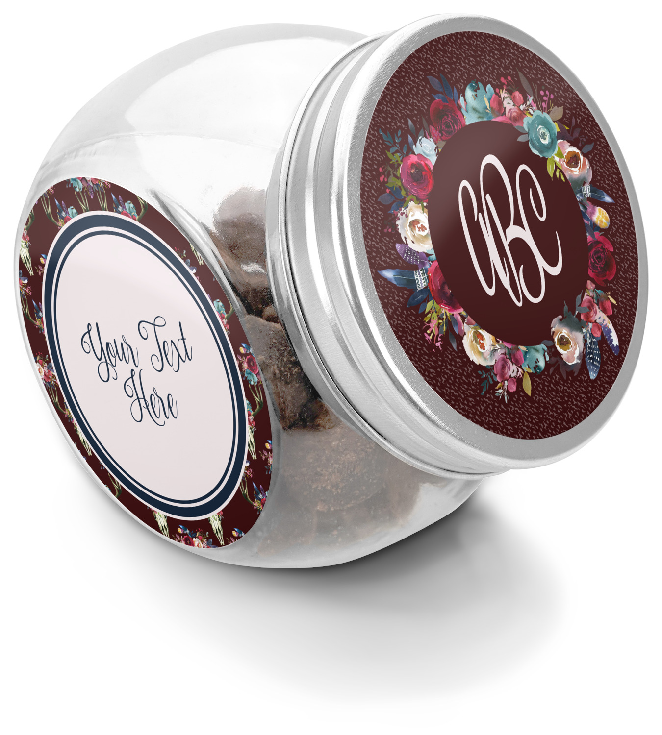 This treat jar is an excellent way to store treats for your favorite canine or feline. Moreover, their delicate, classy appearance makes them a tasteful addition to your countertop's décor. Crafted from clear glass, its unique construction and silver metal, screw-on lid allows for quick and easy access. Three, permanent, vinyl stickers are applied to both sides of the jar and lid, presenting your personalized design. The base of this glass, dog treat jar is 3.4" x 4.75", and the jar stands at 5" tall. Though on the smaller side, this jar is best suited for smaller treats or training treats.