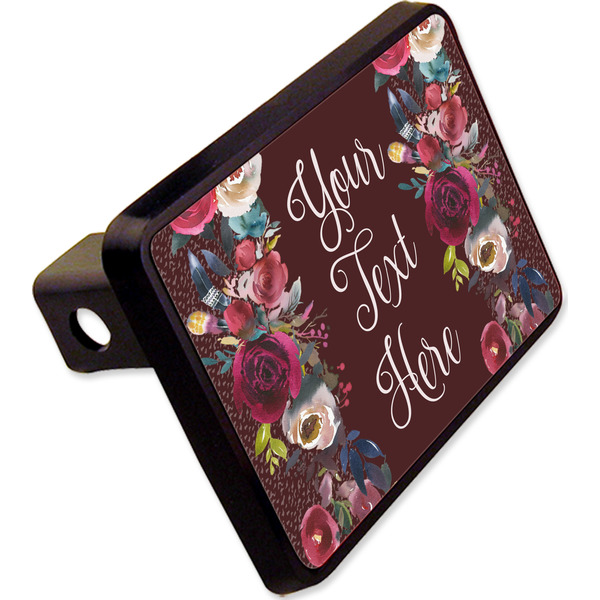 Our receiver hitch covers are molded, durable, and available in a size that fits 2in., square receiver holes. This model is best suited for a Class 3 or Class 4 hitch, but please consult our hitch sizing guide to make an informed purchase. We print your design on the surface of the rectangular cover, while the rest of the cover is a sleek, black color. The design's vibrancy will last up to 2 years in harsh sunlight. Designed for easy attachment, the cover slides easily into your trailer hitch and can be secured using a pin (not included).
