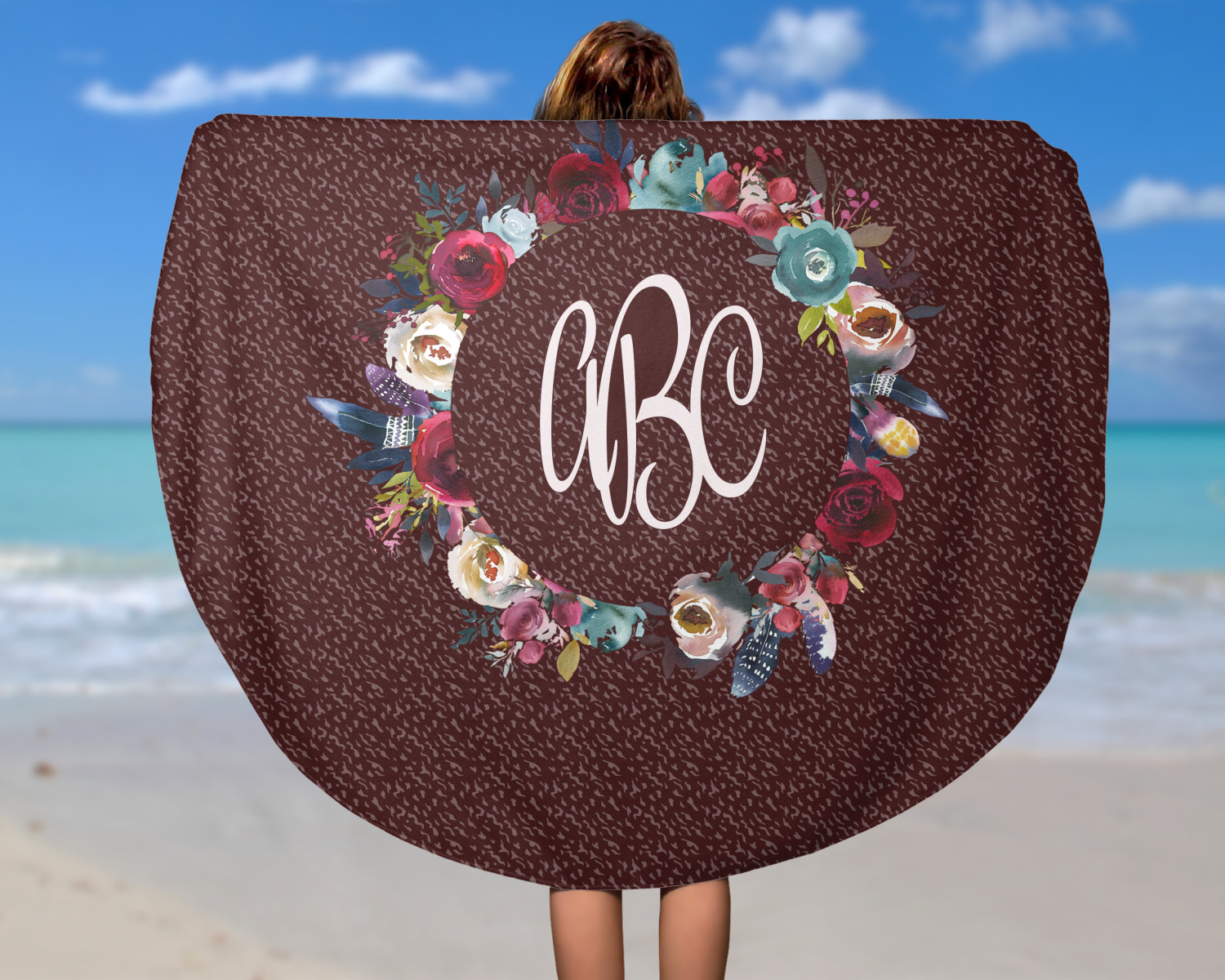 Think out of the box on your next beach, pool, or picnic day in style on your personalized round towel. This must have durable accessory is the perfect size for keeping you, and your possessions out of the sand. Sprawl out in the sun without getting your hands dirty, the unique round design allows for a full range of motion.