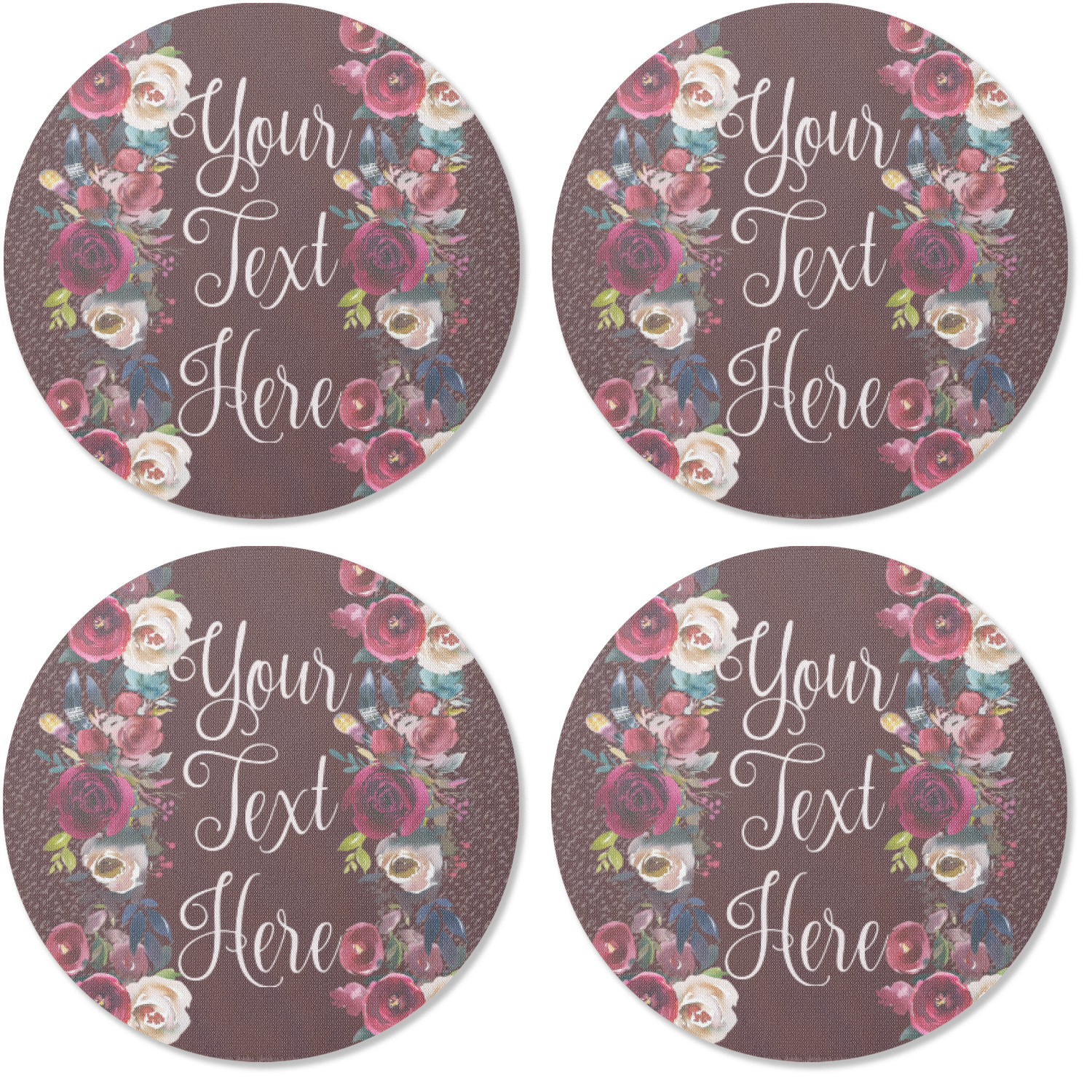 These drink coasters have a smooth, polyester top and a textured, rubber backing on its bottom. The non-slip rubber backing underneath works to keep any spills at bay. At 4 by 4 by 0.25 inches thick, these custom coasters are a suitable size for most drinkware. Your personalization is displayed atop the face of the cup coaster. We sell these rubber coasters in two different shapes: square and round. You can buy each shape as singulars or as a set of 4.