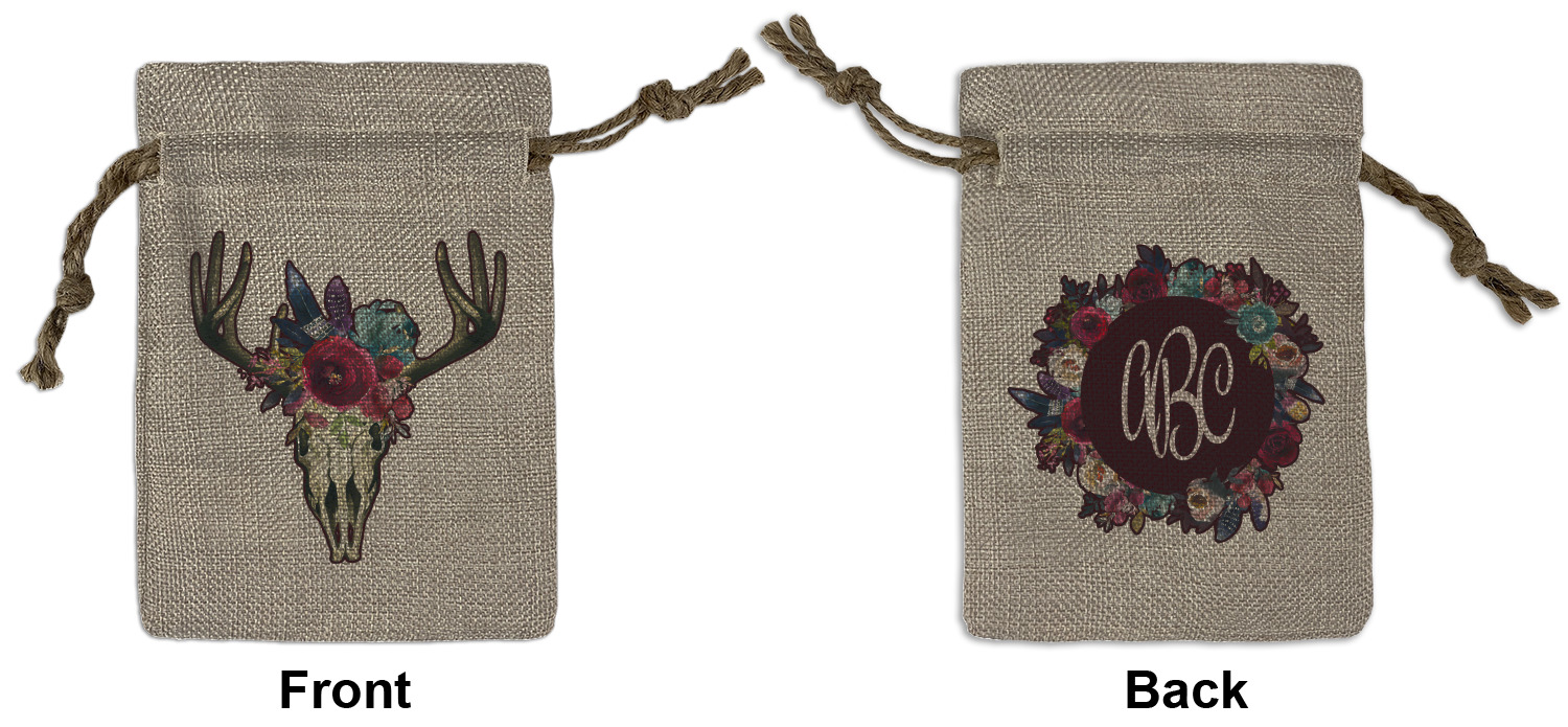 We sell our Burlap Gift Bags in 3 variant sized bags. Made with burlap polyester, each personalized bag can be secured with a twine drawstring pull. Your custom design is available to print on one side or both sides - completely up to you! The sizes of the bags measure approximately 4.5" x 6.5" for the smallest size, 6.5" x 8.0" for the medium size, and 6.5" x 13.5" for the large-sized bag.