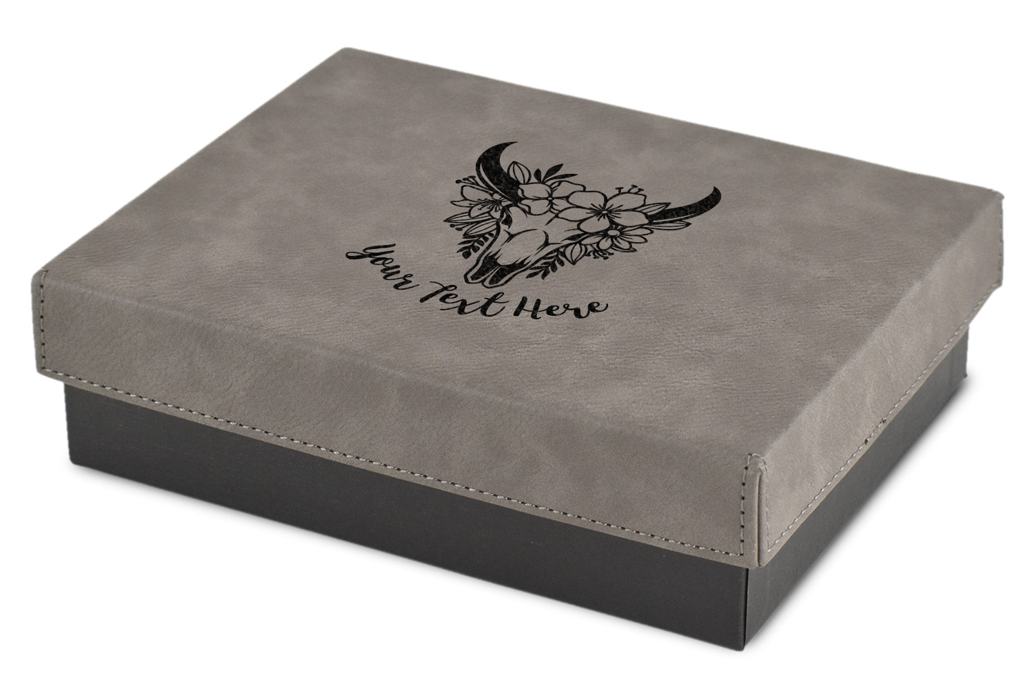 These gift boxes are available in 3 different sizes to accommodate various sized gifts. Available in gray as a neutral color for any occasion as well as to showcase your design boldly. Engraved with a laser this high quality paper board and faux leather gift box is unique and makes any gift stand out.