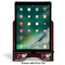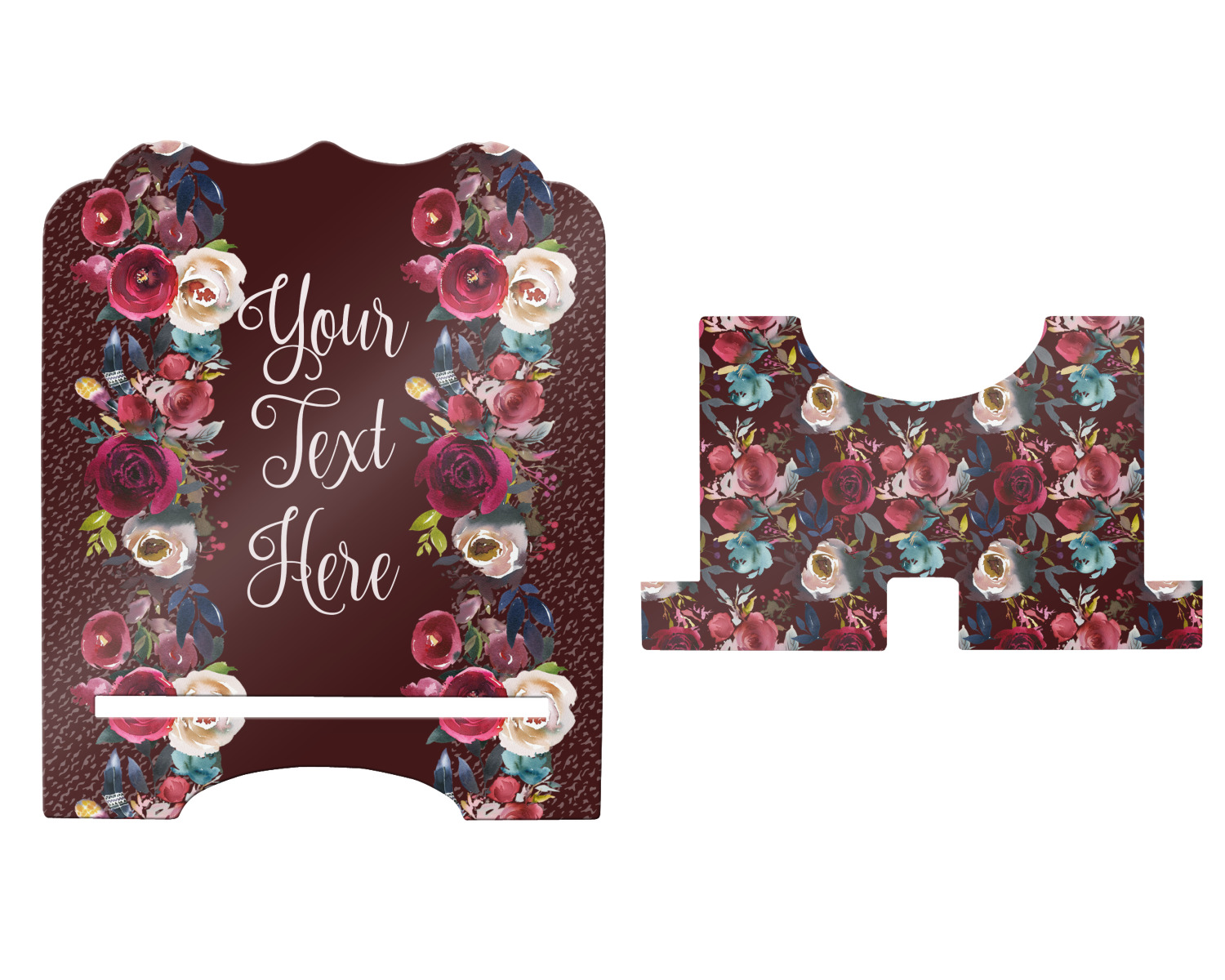 The stand is comprised of two hardboard pieces that fit snugly together and stabilize one another. The bottom part of the iPad stand supports your tablet, and has space for your tablets charger while in use. At 9.25" x 11.5", this tablet mount can support a device between the sizes of the iPad Pro and the iPad Mini 2. The uppermost part of the stand features a decorative, curved edge for a classy, suave appearance. We print your customization atop the face of the stand, in vibrant color. The remaining sides are colored a sleek black.