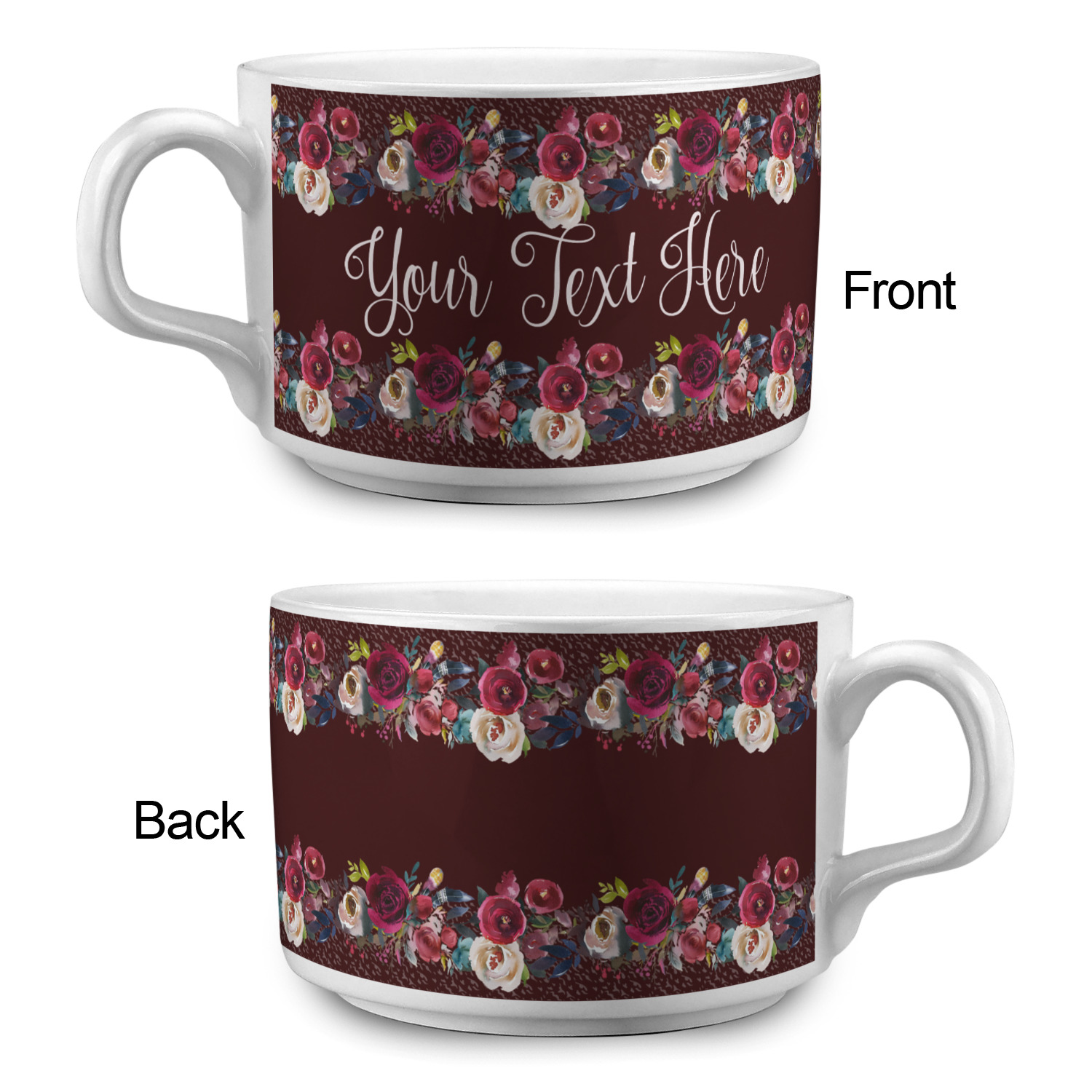 Personalize your cup with the perfect design! The white ceramic makes for a bright background to whatever personalization you decide to add to your little cup. Give your tea or coffee some class! Choose from thousands of patterns and fills in our system to fit your personality! Change whatever elements you like from the text to the ribbons to the graphics.
