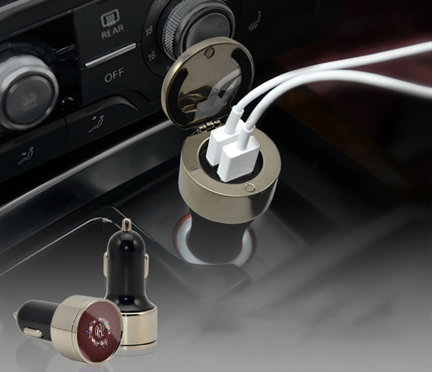Incorporate a custom accent to your travels with this USB car charger! Our USB car adapters strike the perfect balance between style and functionality and make such practical gifts for loved ones!