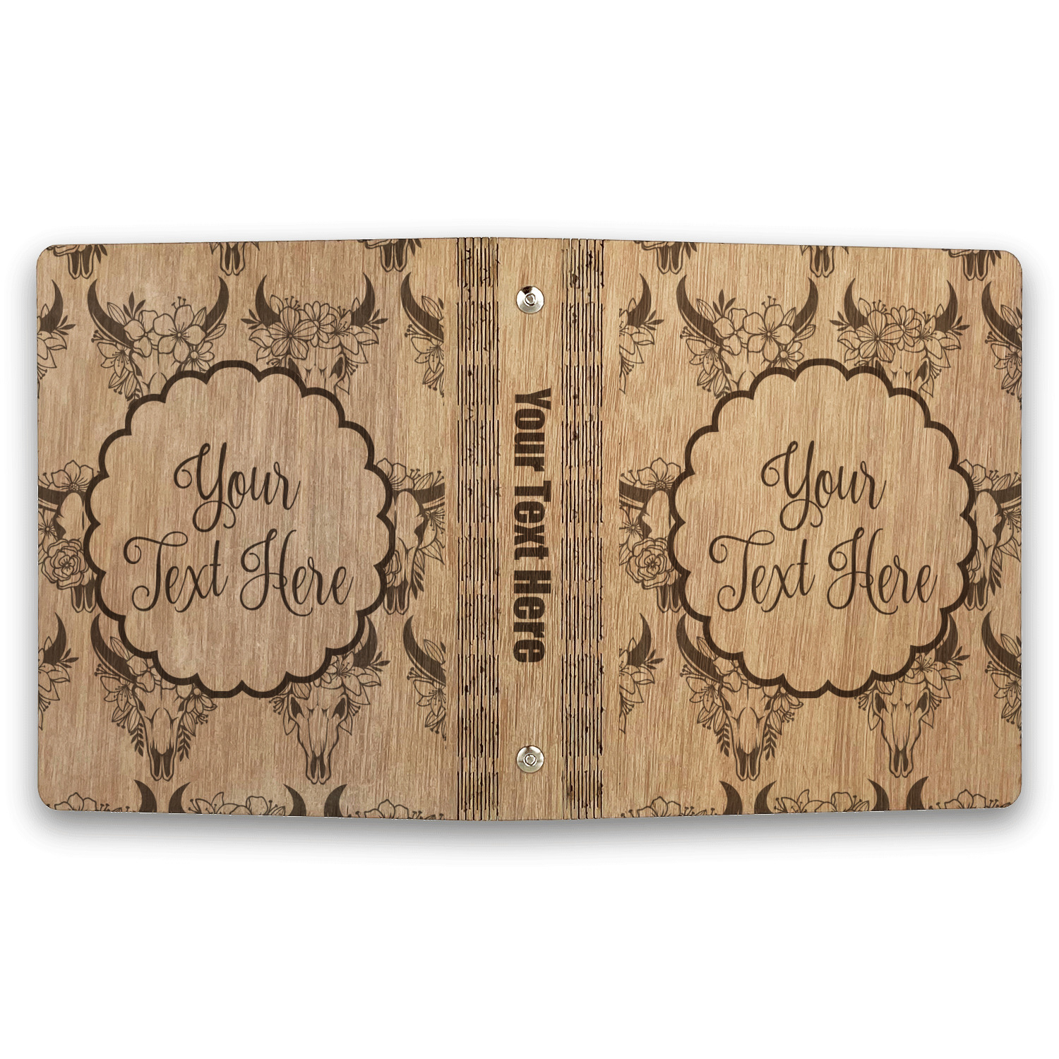 Made from premium hardwood, these are laser engraved then polished with wax to give a nice sheen and smooth feel to the product. The inside of the binders are finished with a faux leather material which is bonded to the inside of the wood to strengthen the wood and give the inside the same refined finish. The rustic brown and gold leather material adds a nice classic touch to the binders.