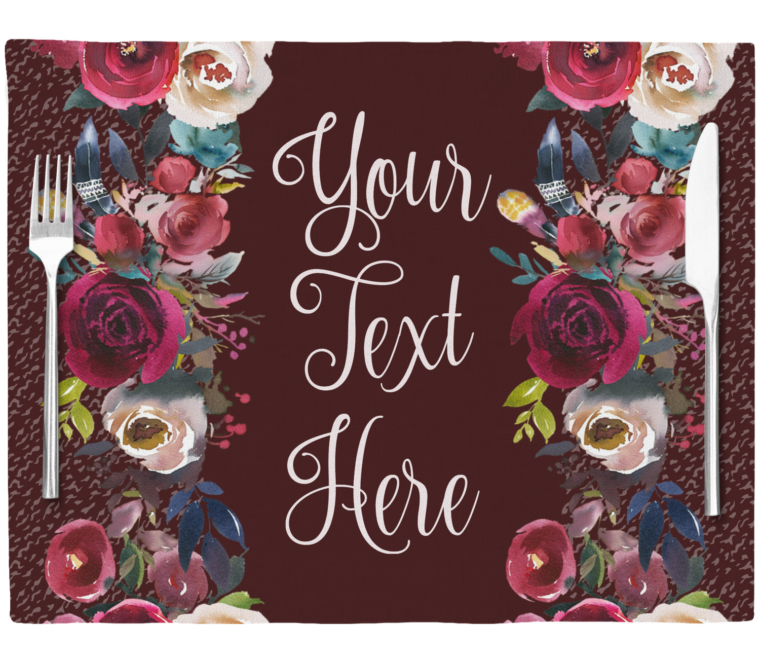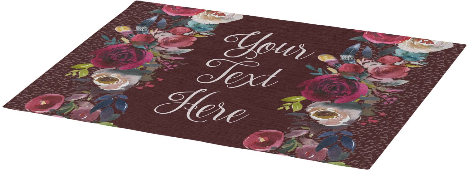 Each of our table mats are a poly twill material with woven burlap detailing. This creates a soft, quality placemat for us to fully print your personalized design across. The woven twill also adds a wrinkle-free surface to set your table! Each customizable placemat is a rectangle shape measuring at approximately 13 x 18 and printed here in the USA.