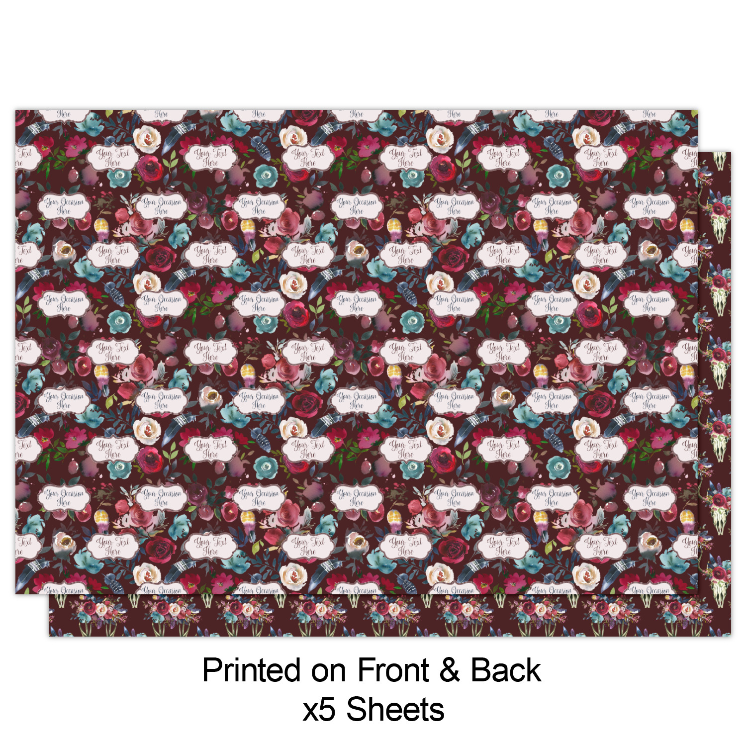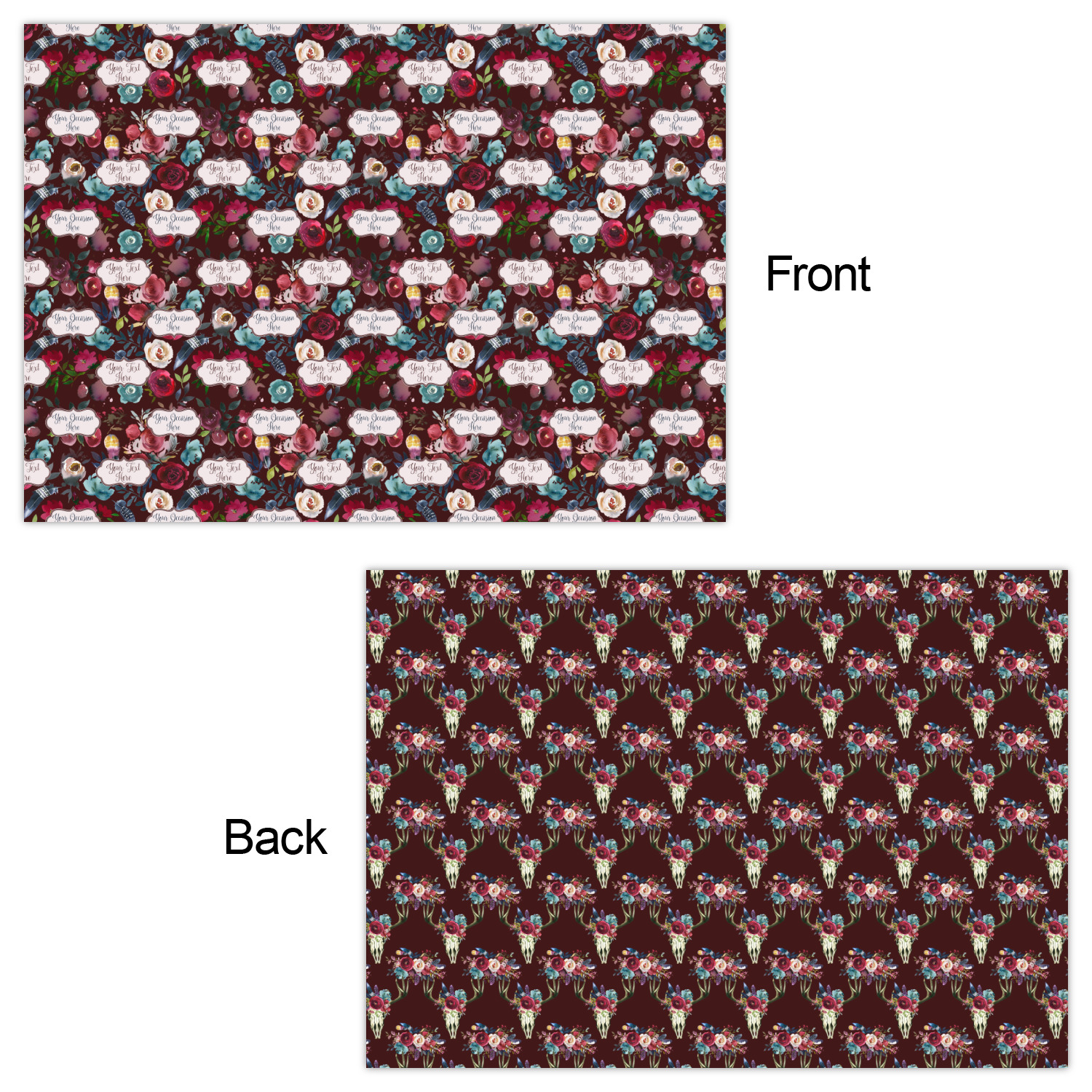 The second print style is double sided or reversible wrapping paper sheets. You can customize both sides of these wrapping paper sheets.