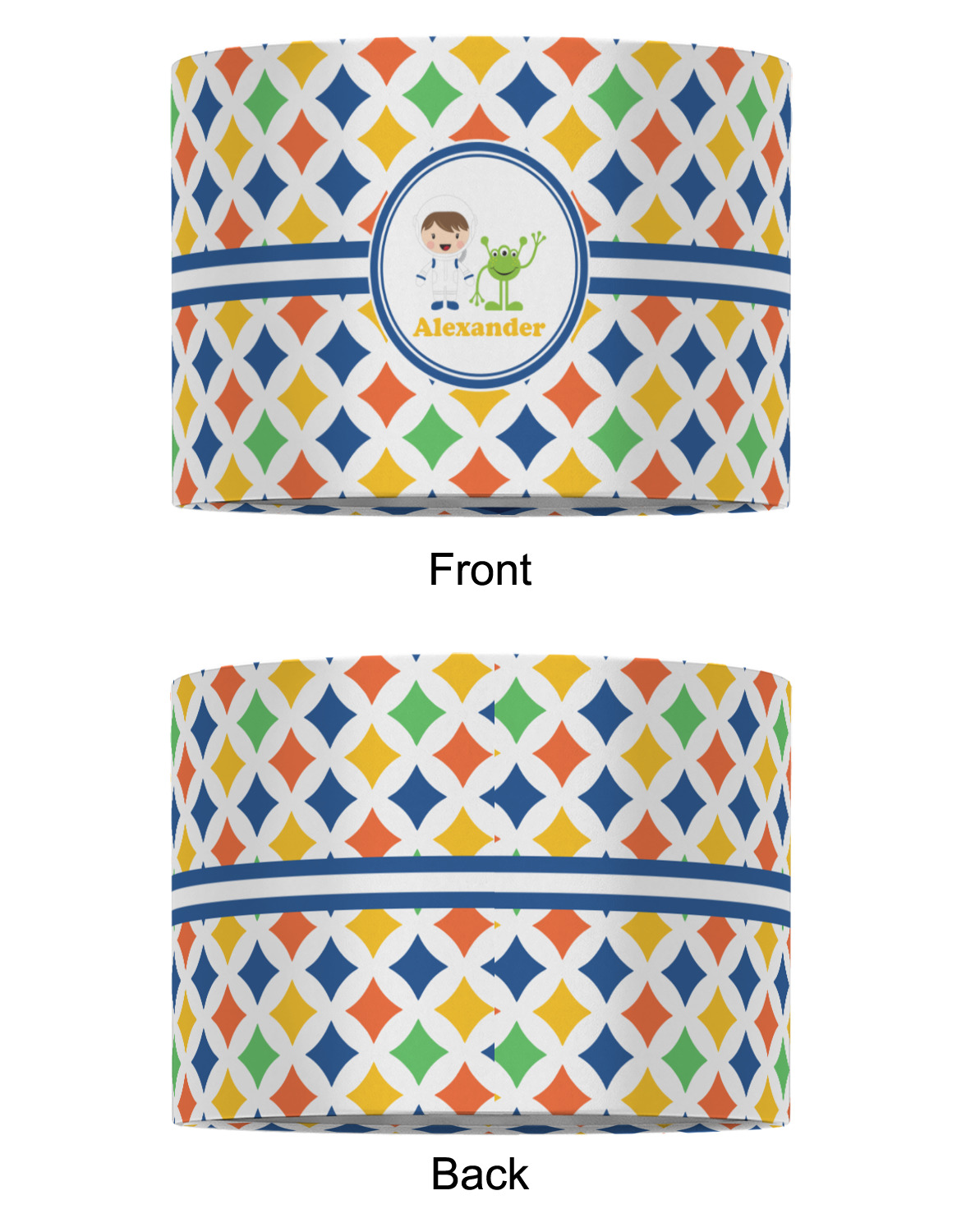 Our customized lamp shades also come in 3 different sizes: 8", 12" and 16", measuring at 8" in diameter by 6" tall, 12" in diameter by 8" tall, and 16" in diameter by 10" tall, respectively.