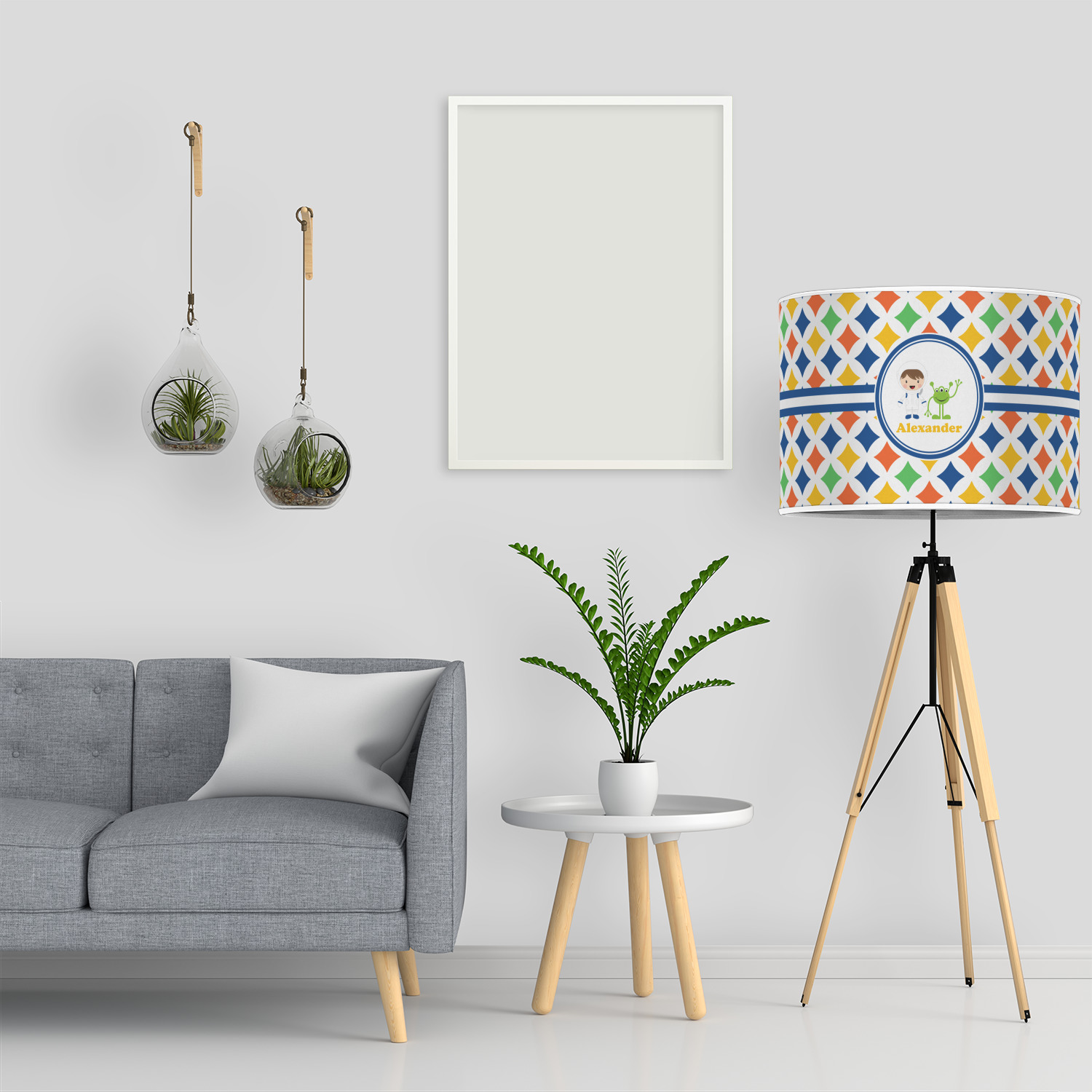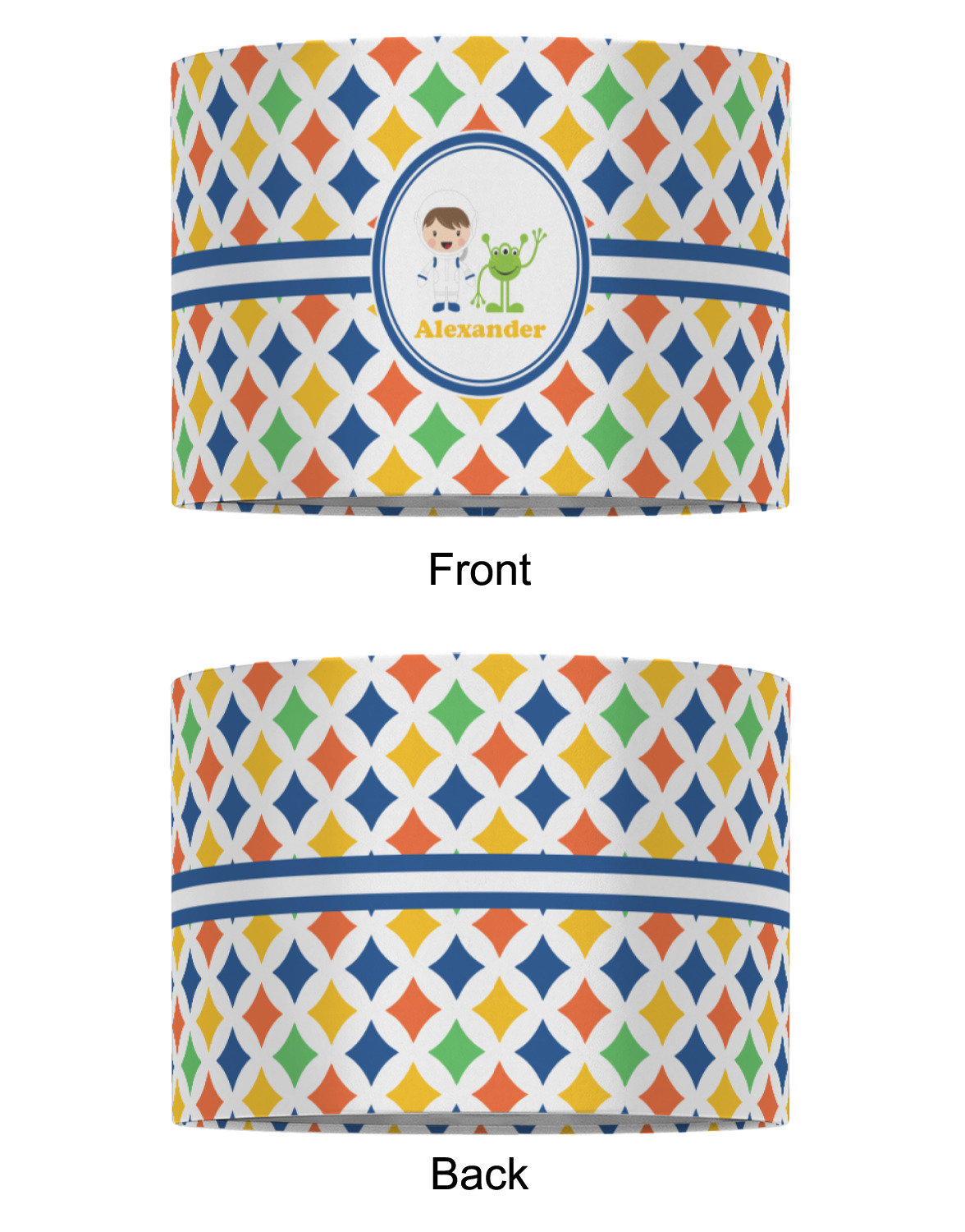Our customized lamp shades also come in 3 different sizes: 8", 12" and 16", measuring at 8" in diameter by 6" tall, 12" in diameter by 8" tall, and 16" in diameter by 10" tall, respectively.
