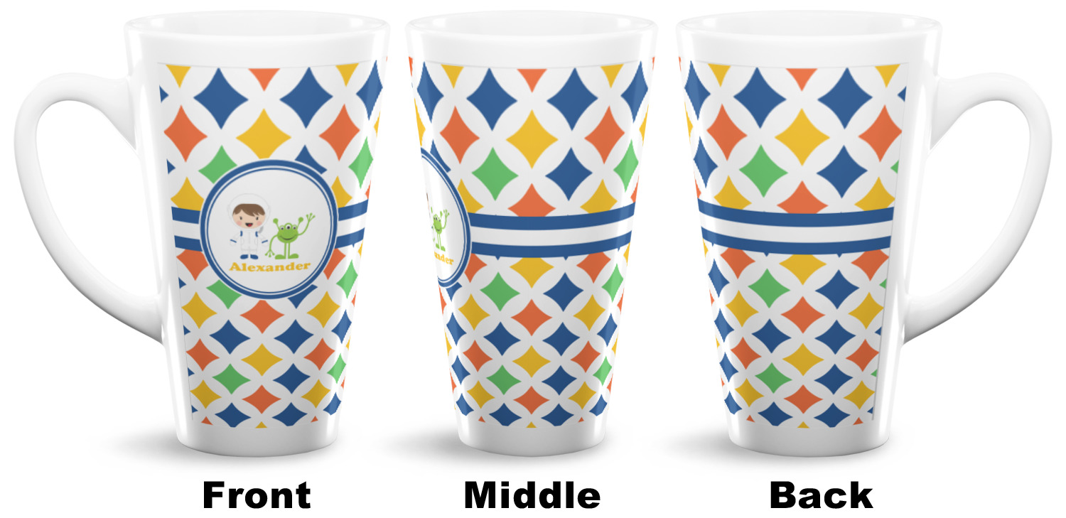 Sip and stay cozy with our custom latte mugs! Mugs are a simple gift for anyone, but make yours unique by personalizing our ceramic mugs for you and your close ones! Our tall latte mugs are great for an iced latte to start your day or the perfect size for some extra warm tea before bed! Use our smaller latte mugs to practice latte art! Browse our many designs, create your own, upload a photo or logo, and more with our online design studio!