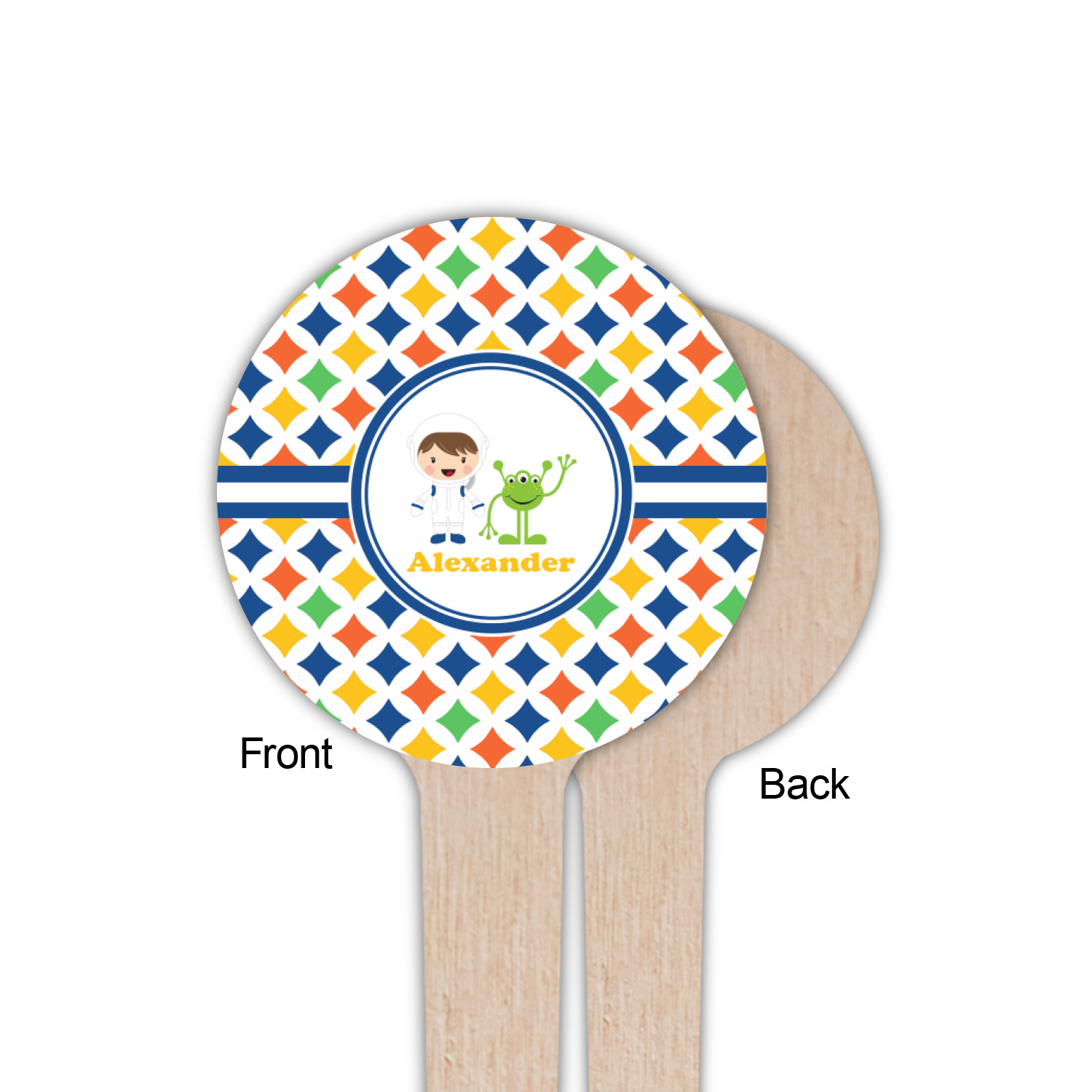 Shape + Symbol Designs for 4" Round Wooden Food Picks - Single-Sided