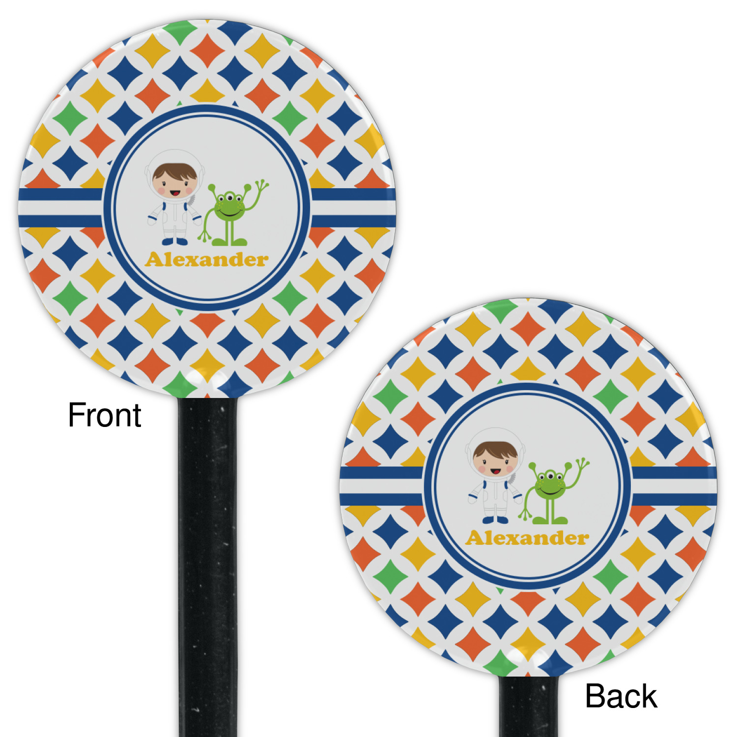Shape + Symbol Designs for 5.5" Round Plastic Stir Sticks - Black - Double-Sided