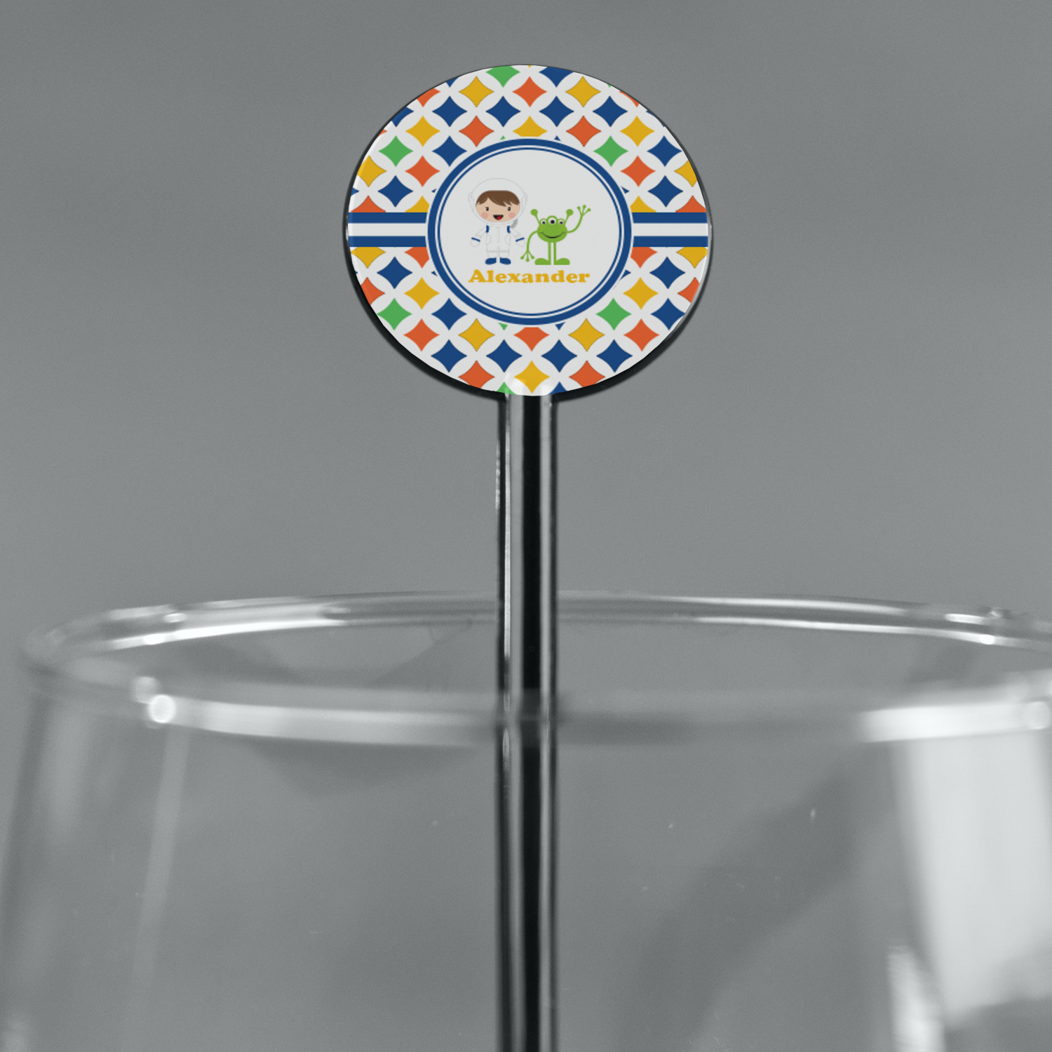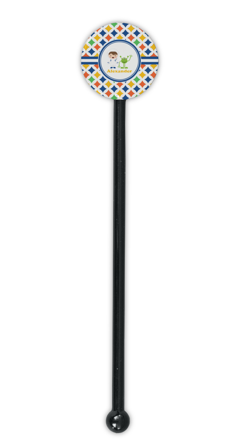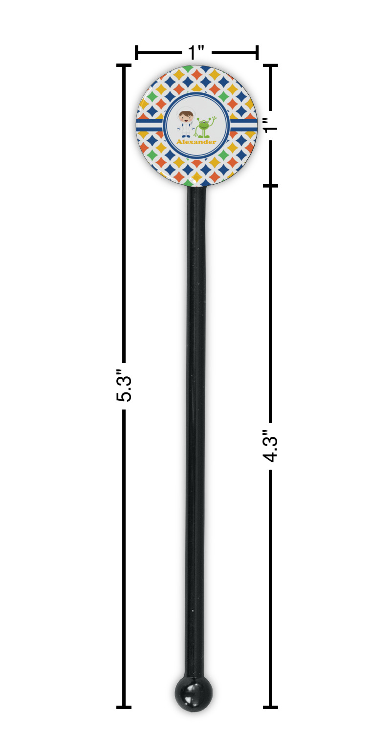 Shape + Symbol Designs for 5.5" Round Plastic Stir Sticks - Black - Single-Sided