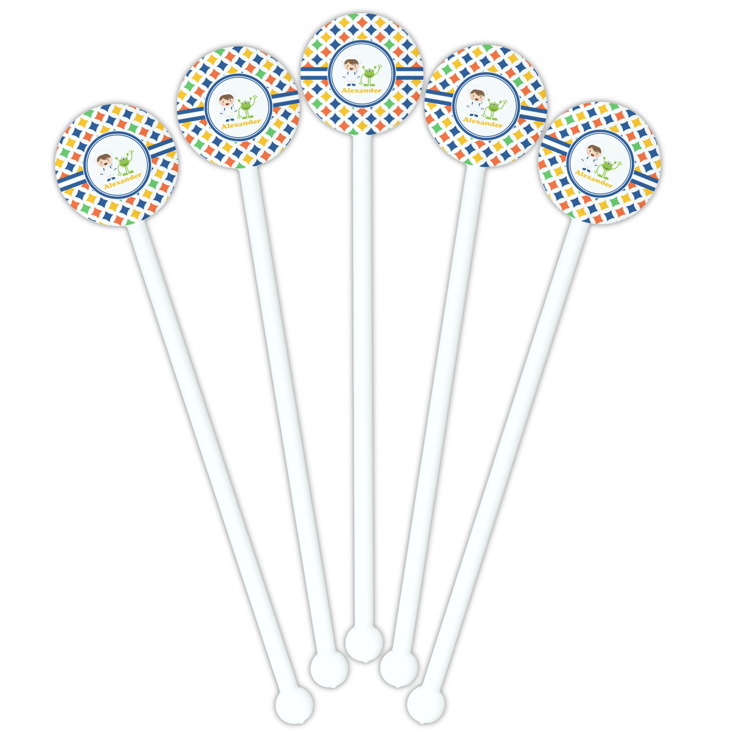 Shape + Symbol Designs for 5.5" Round Plastic Stir Sticks - White - Double-Sided