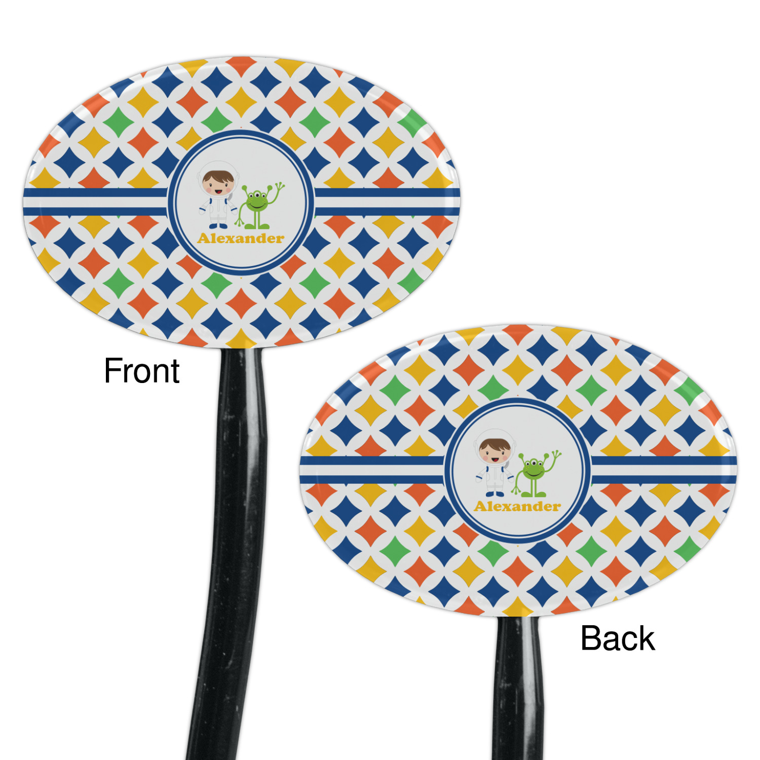Shape + Symbol Designs for 7" Oval Plastic Stir Sticks - Black - Double-Sided