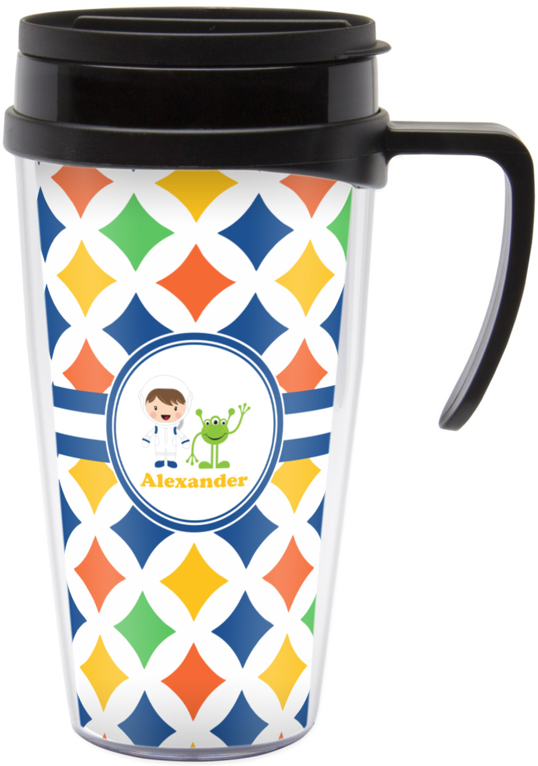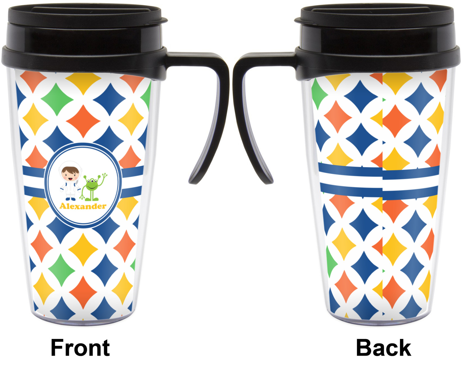 Keep your drink secure while on your daily commute with one of our personalized travel mugs! These travel mugs will add a splash of color and creativity to your kitchen counter-top, car cup holder, office desk, or wherever you choose to place them! With these custom mugs, you'll never have to settle for a boring, run-of-the-mill travel mug.