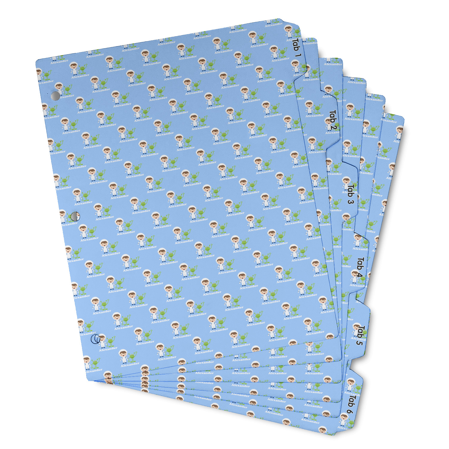 Made from a durable heavy weight card stock, these page dividers are printed on one side with your custom design. Customize the title on each tab as well as the background on each divider to make them unique to you. The possibilities are endless!
