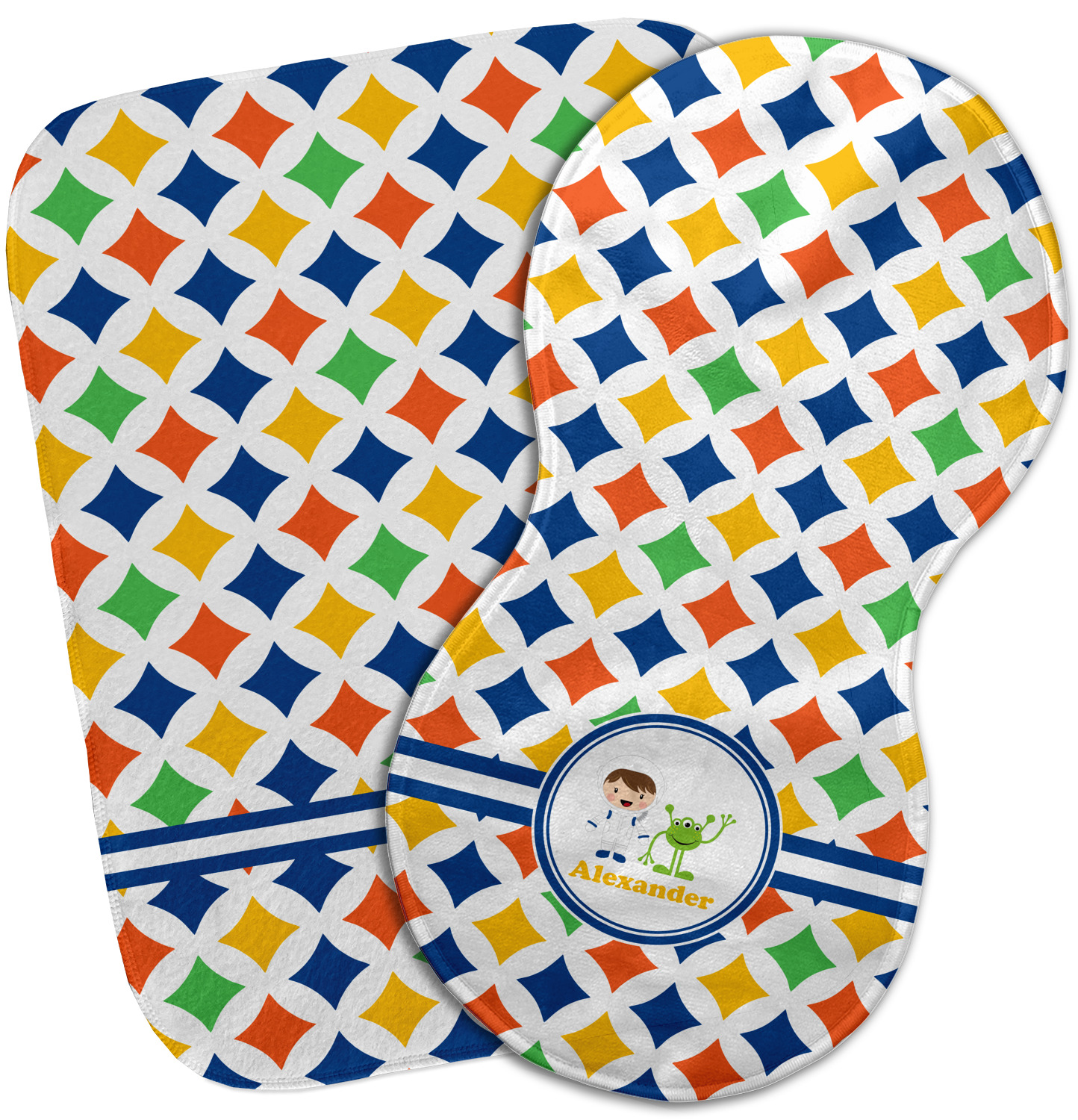 Choose your baby burp cloth from our two styles - Fleece (rectangular) or Microfiber Velour (peanut shape). The lightweight and absorbent design makes each burp cloth multipurpose; use them as a burp pad, a lap pad, a changing table, or a spare cloth to clean up any baby mess. Your customization is displayed across the front with baby-safe ink to ensure extra comfort with a white backing.