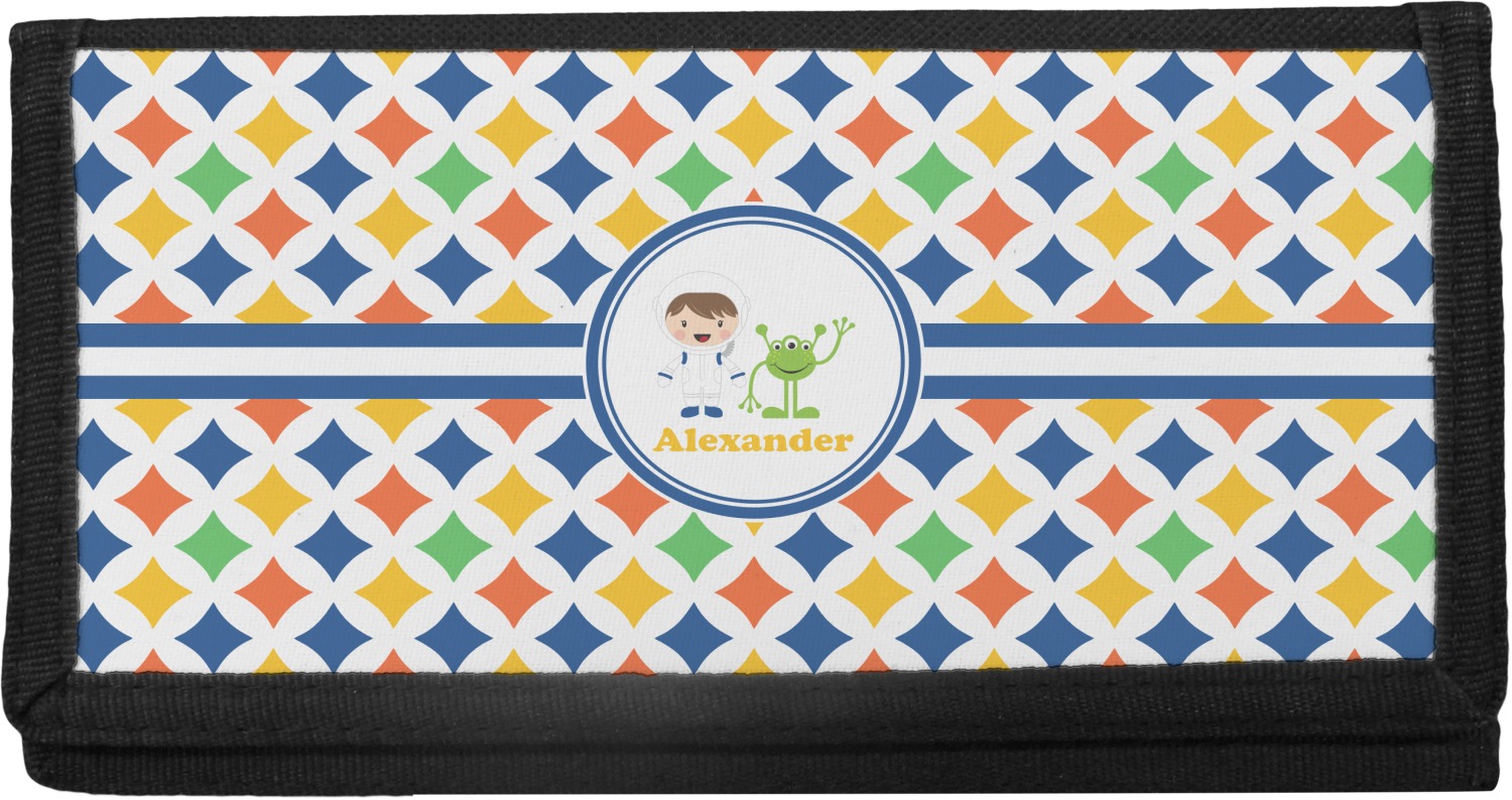 The checkbook cover is made of a durable canvas and the front flap is decorated with a vibrant design of your choosing. With 4 slots for credit cards or IDs, and 2 compartments for your checkbook register, cash, receipts, business cards, and more; this checkbook cover could easily double as a wallet.