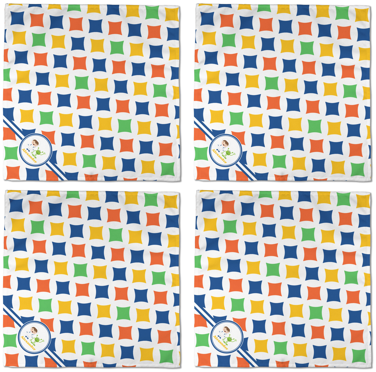 Each customizable cloth napkin is a polyester material guaranteed for long-term use. Since our napkins are cloth, it serves as a great reusable and eco-friendly dining decor. We sell personalized napkins individually or as a set of 4! Print your own unique design on all four napkins, or create four individual designs for each napkin! We offer two different napkin sizes - Cocktail napkins (approx. 10 x 10) and Dinner napkins (approx. 20 x 20). We print your design on one side, perfect for displaying your custom designed lunch napkins in any fold or table setting!