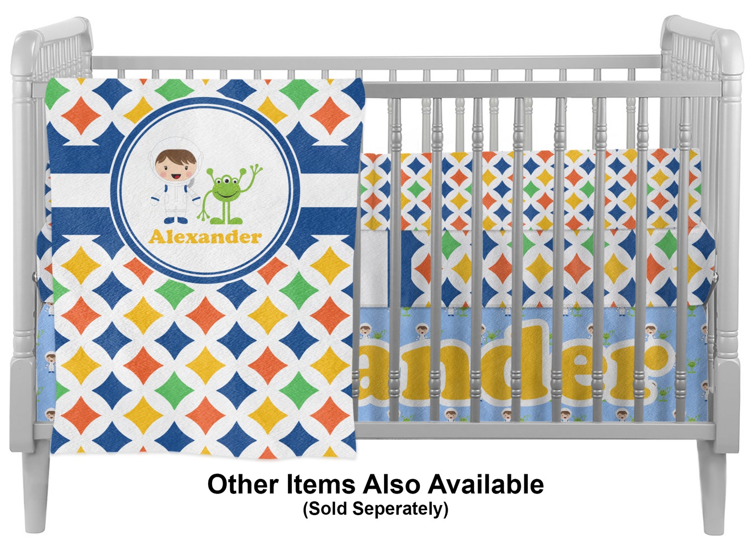 Interested in adding more personalized items to your baby's crib bedding set? Explore our Baby and Toddler department, where you'll find an array of customizable products for your child! We offer crib fitted sheets, nightlights, and curtains for your baby's nursery. Looking to match your own comforter set with your child's? We even offer duvet covers and comforters for adults, in a variety of sizes!