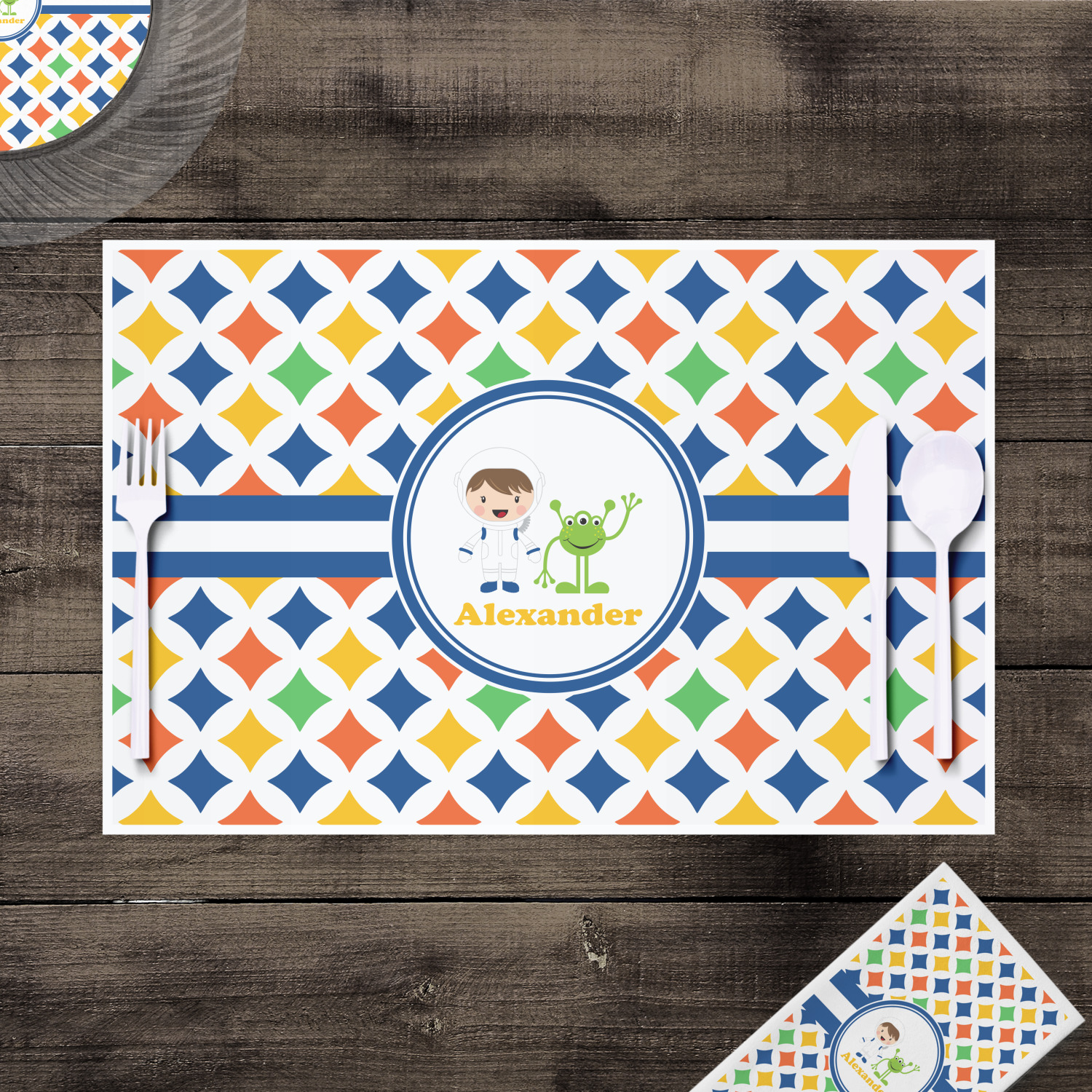 Our disposable paper placemats are perfect for events where the tables need to be decorated with the event's theme. These paper placemats can be customized to match any theme. You can upload your own image / photo, logo or artwork. You can customize one of our designs and modify the colors, patterns, fonts, personalization, etc. to suit your needs.