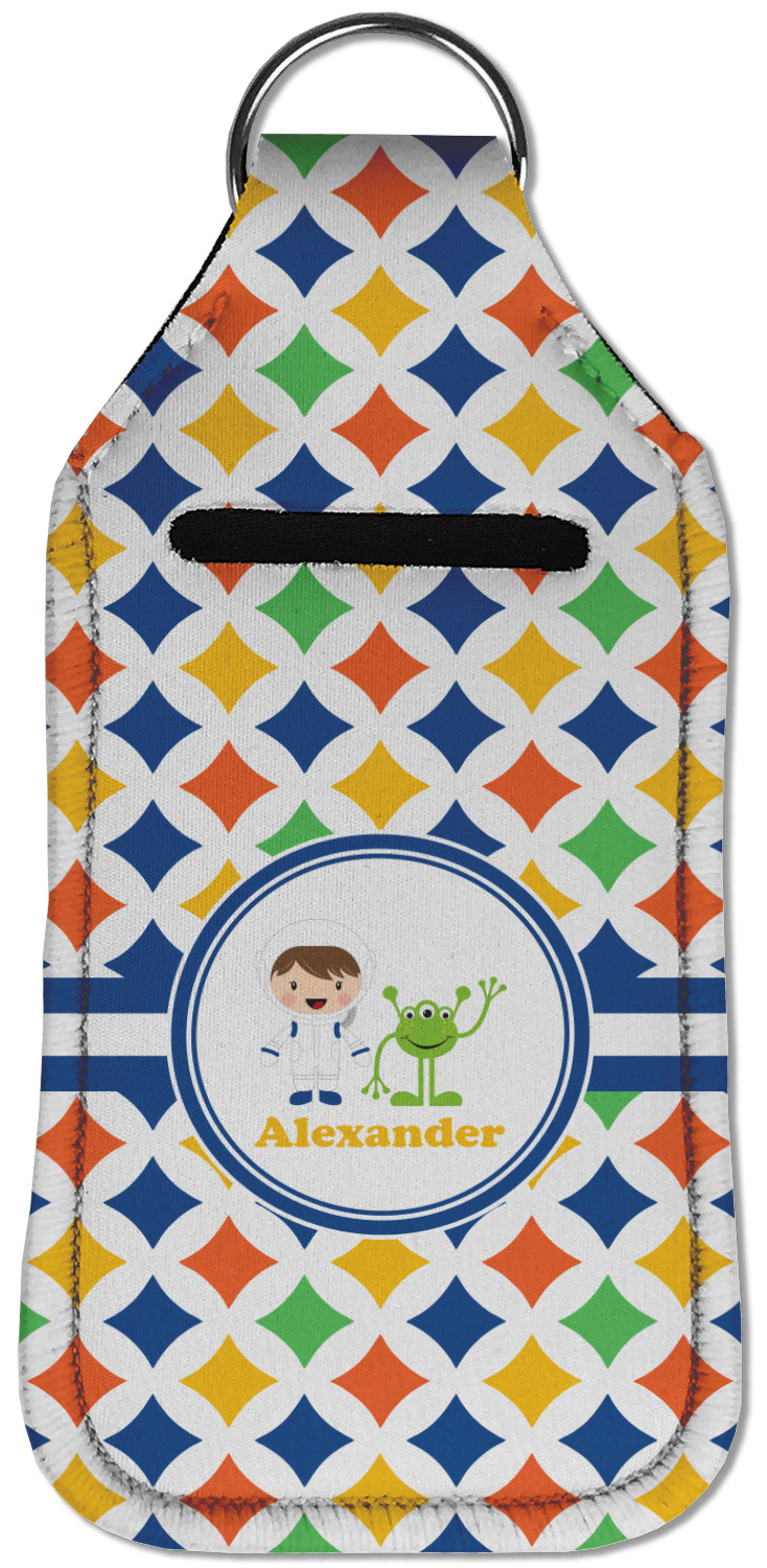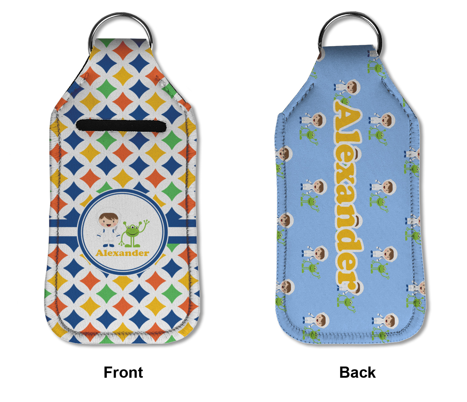 Each hand sanitizer holder comes with its own empty travel-sized, refillable hand sanitizer sure to fit snug in your customized sanitizer case! Our hand sanitizer cases are a durable, yet soft neoprene material sure to last any daily activities or travel agenda. Customize and personalize a hand sanitizer bottle holder with one of our two sizes - small (4.25" x 2.25") or large (5.5" x 2.5"). Each travel sanitizer holder comes with a keyring for attachment on bags, keys, or more!