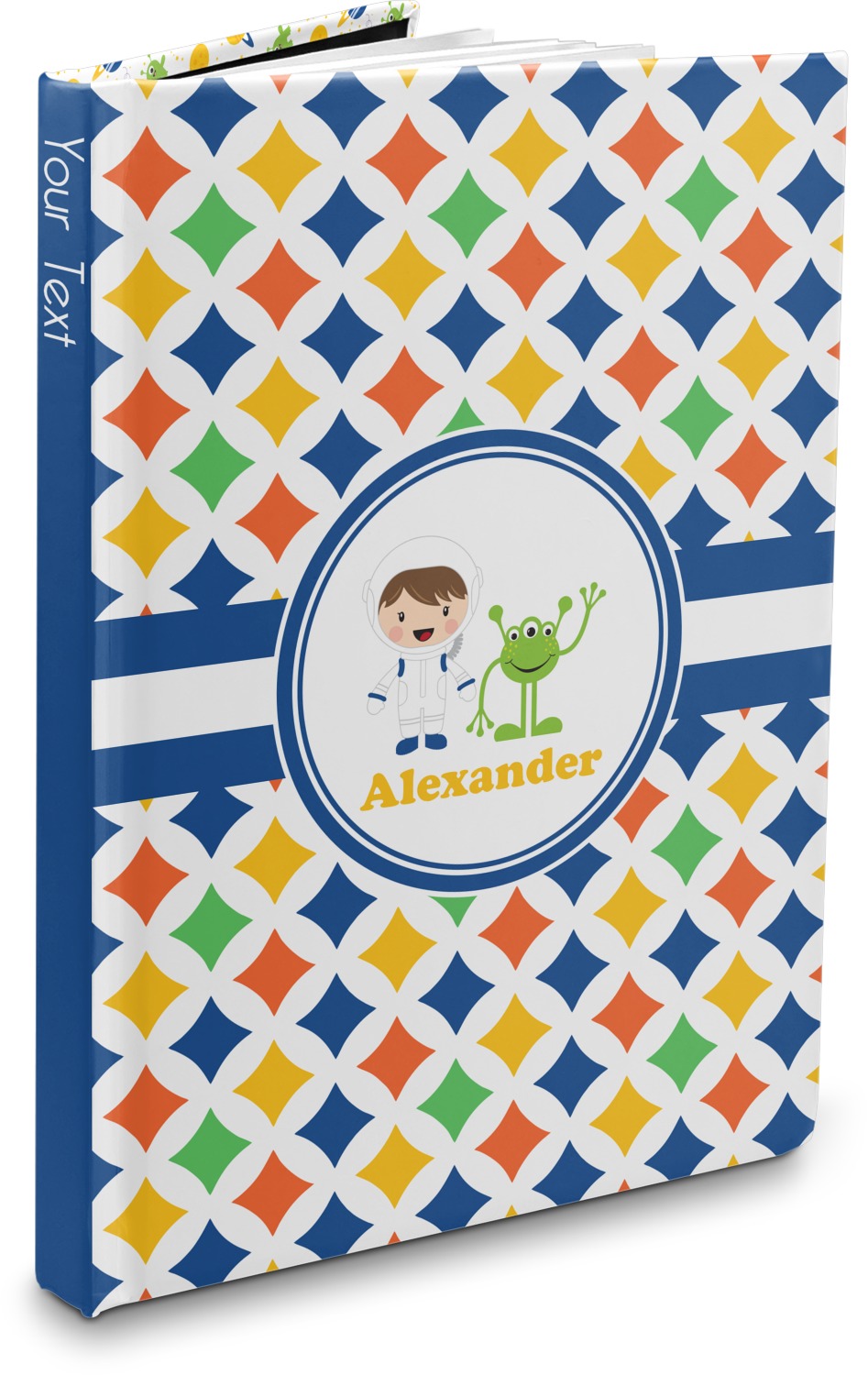 The hardcover of this personalized journal is covered with a smooth, matte, laminate coating. The unique laminate of the covers gives the hardcover notebook a smooth, sleek feel. Filled with 75, lined, white pages, this hardbound notebook has enough room for your reminders and notes. For your convenience, the pages have been perforated, which guarantees an easy tear and removal. Your customization is printed across the entire cover of the book, while the interior is black in color.