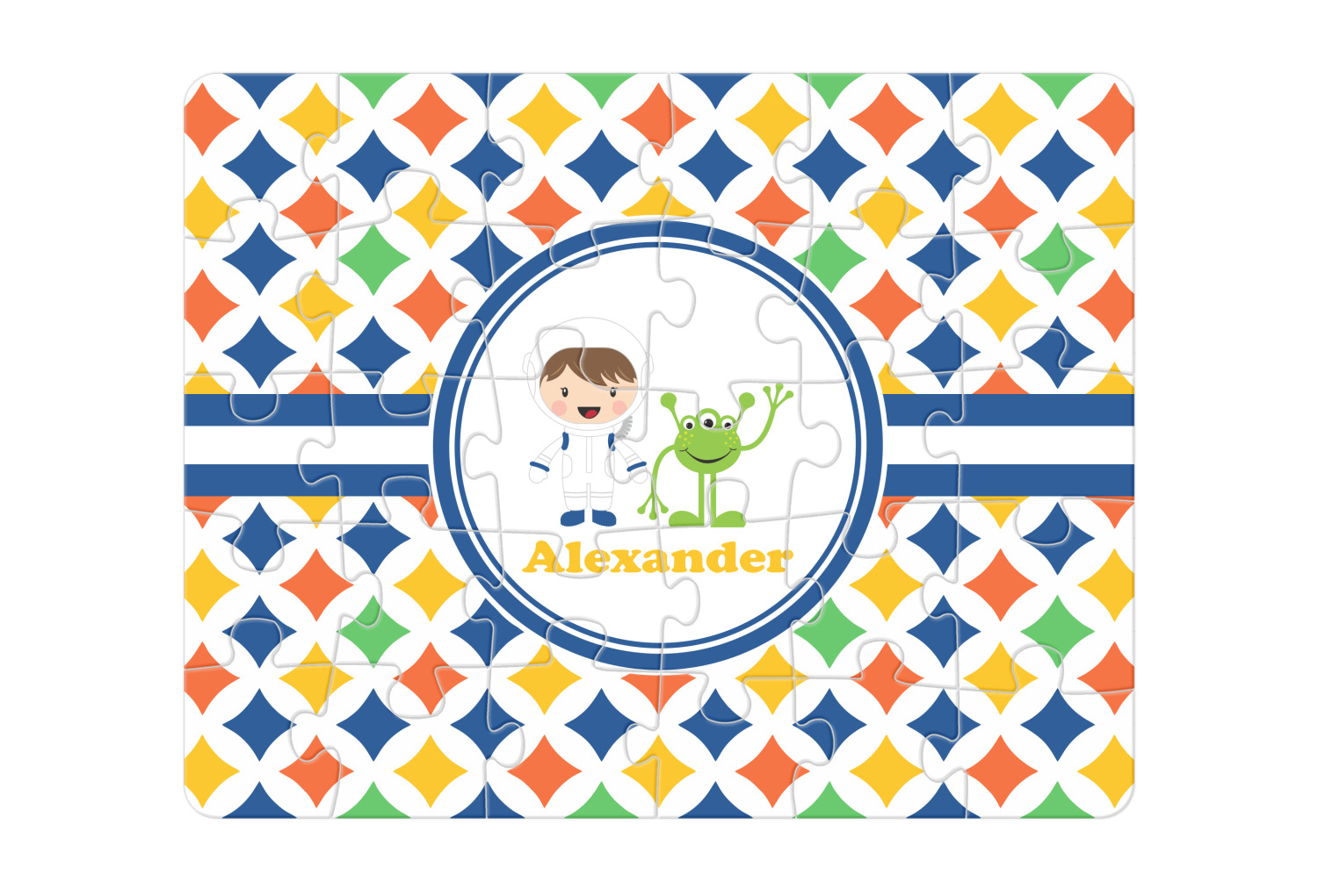 You can also upload your logo or art that you or your kids drew. To create more challenging jigsaw puzzles, you can create a pattern from with your logo or artwork. You can also add other elements such as text or personalization.