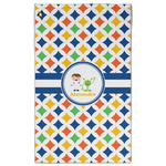 A white wide band trimmed in coordinating blue breaks up the pattern and showcases your little space guy with his martian buddy. Add personalization of your choice for that special touch.