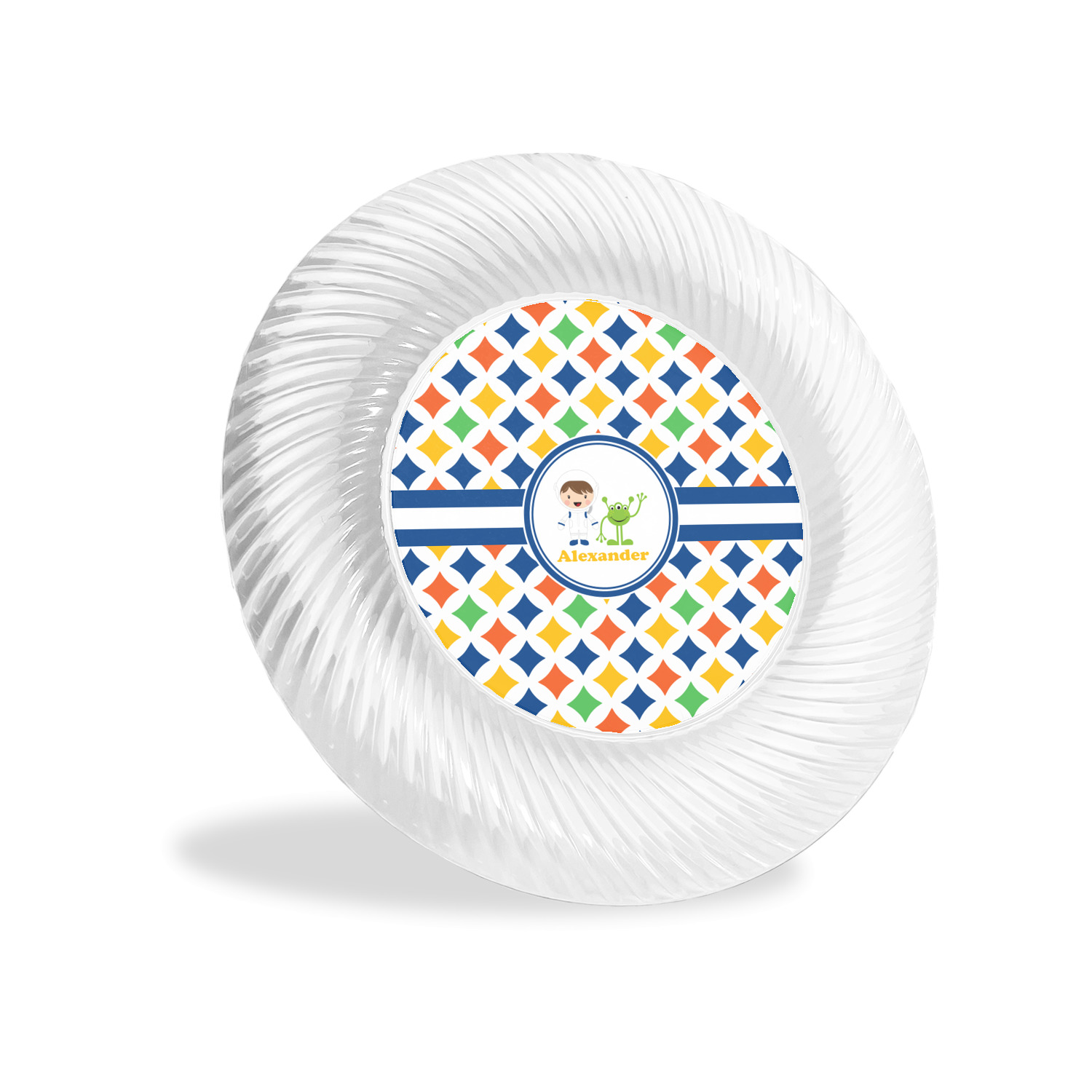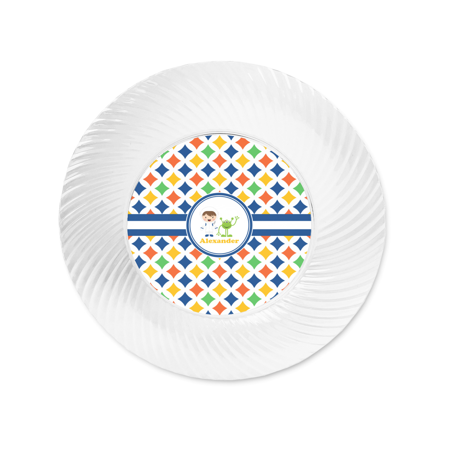 Made from a beautiful clear plastic plate as a base, your design is printed to the underside of the plate. The outside of the plate has a classic swirl texture to it for a high quality look and feel.